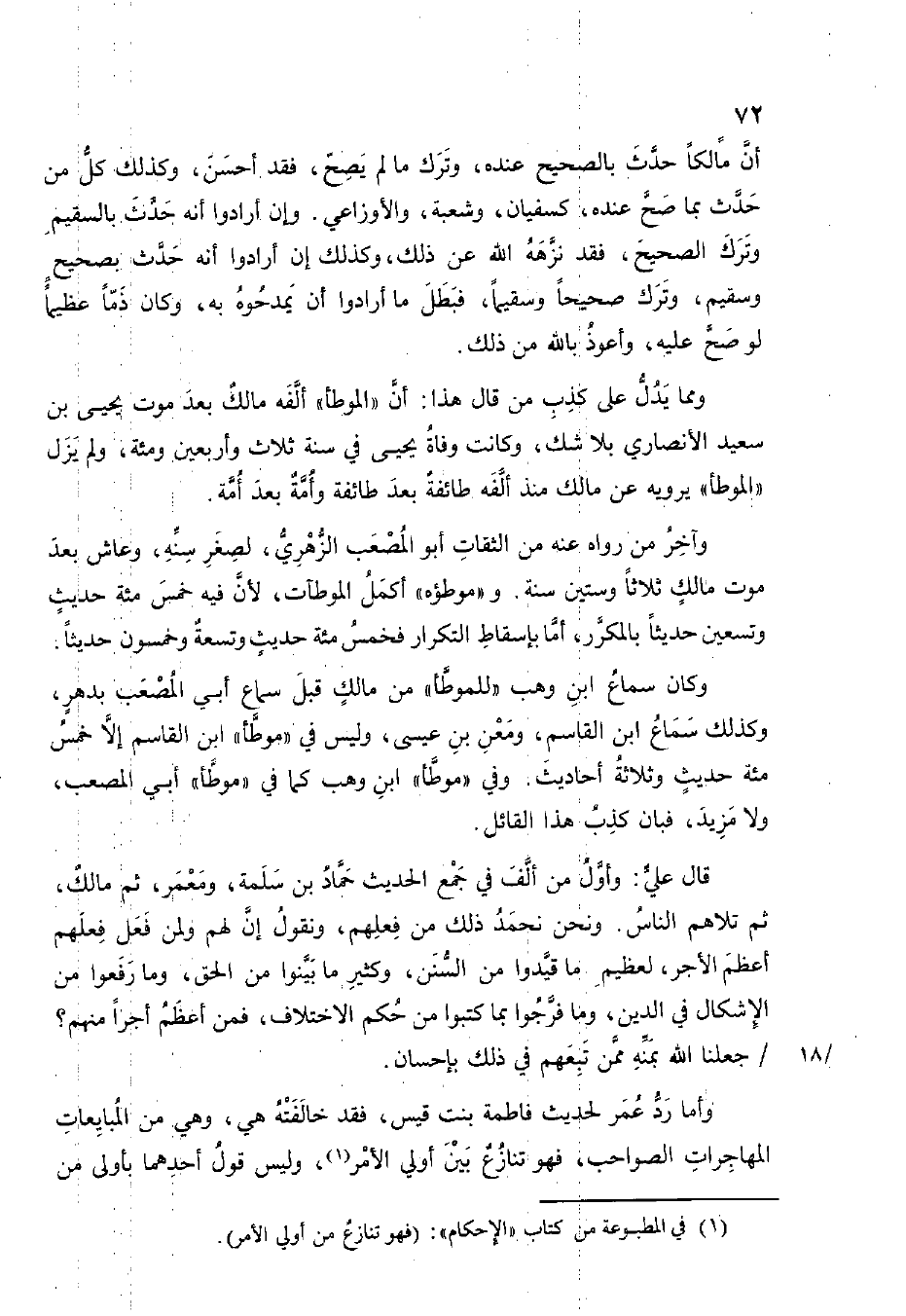 وَآخر من رَوَاهُ عَنهُ من الثِّقَات أَبُو المصعب الزُّهْرِيّ لصِغَر سنه وعاش بعد موت مَالك ثَلَاثًا وَسِتِّينَ سنة وموطؤه أكمل الموطآت لِأَن فِيهِ خمس مئة حَدِيث وَتِسْعين حَدِيثا بالمكرر أما بِإِسْقَاط التّكْرَار فَخمس مئة حَدِيث وَتِسْعَة وَخَمْسُونَ حَدِيثا