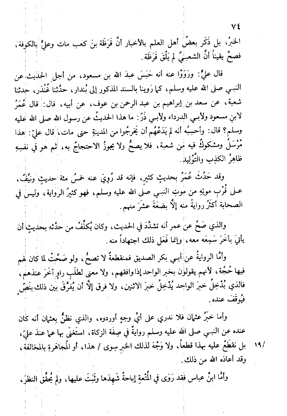 قَالَ عَليّ وَرووا عَنهُ أَنه حبس عبد الله بن مَسْعُود من أجل الحَدِيث عَن النَّبِي صلى الله عَلَيْهِ وَسلم كَمَا روينَا بالسند الْمَذْكُور إِلَى بنْدَار حَدثنَا غنْدر حَدثنَا شُعْبَة عَن سعد بن إِبْرَاهِيم بن عبد الرَّحْمَن بن عَوْف عَن أَبِيه قَالَ قَالَ عمر لِابْنِ مَسْعُود وَلأبي الدَّرْدَاء وَلأبي ذَر مَا هَذَا الحَدِيث عَن رَسُول الله صلى الله عَلَيْهِ وَسلم قَالَ وَأَحْسبهُ أَنه لم يدعهم أَن يخرجُوا من الْمَدِينَة حَتَّى مَاتَ قَالَ عَليّ هَذَا مُرْسل ومشكوك فِيهِ من شُعْبَة فَلَا يَصح وَلَا يجوز الِاحْتِجَاج بِهِ ثمَّ هُوَ فِي نَفسه ظَاهر الْكَذِب والتوليد