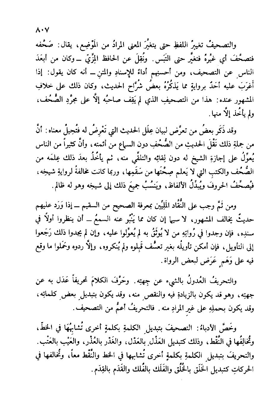 وَخص الأدباء التَّصْحِيف بتبديل الْكَلِمَة بِكَلِمَة أُخْرَى تشابهها فِي الْخط وتخالفها فِي النقط وَذَلِكَ كتبديل العذل بِالْعَدْلِ والغدر بالعذر وَالْعَيْب بالعتب