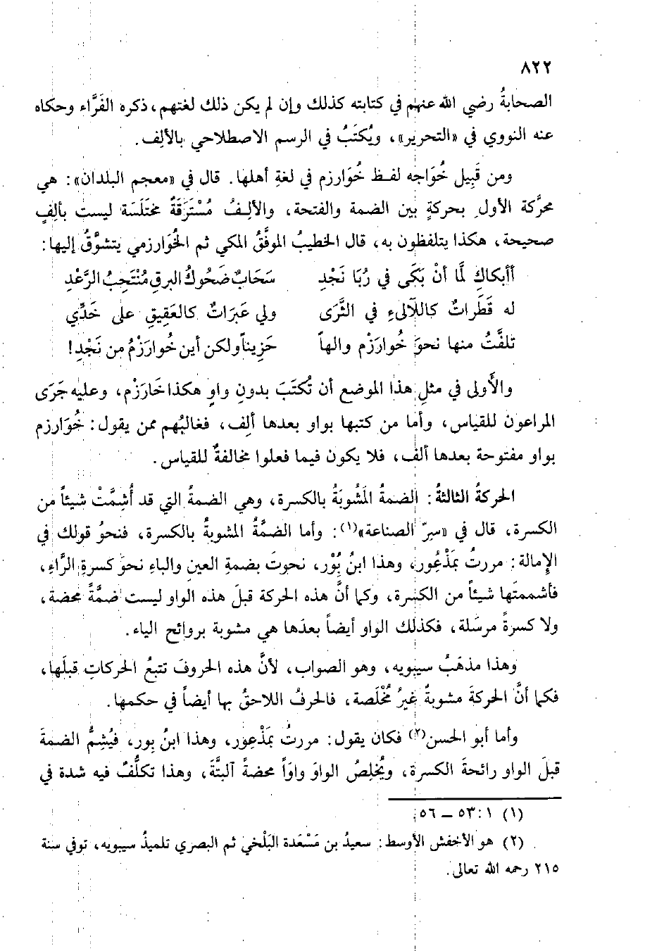 وَالْأولَى فِي مثل هَذَا الْموضع أَن تكْتب بِدُونِ وَاو هَكَذَا خارزم وَعَلِيهِ جرى المراعون للْقِيَاس وَأما من كتبهَا بواو بعْدهَا ألف فغالبهم مِمَّن يَقُول خوارزم بواو مَفْتُوحَة بعْدهَا ألف فَلَا يكون فِيمَا فعلوا مُخَالفَة للْقِيَاس