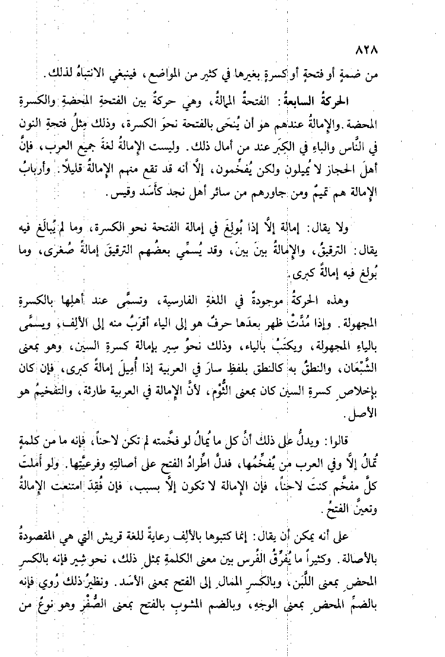وَلَيْسَت الإمالة لُغَة جَمِيع الْعَرَب فَإِن أهل الْحجاز لَا يميلون وَلَكِن يفخمون إِلَّا أَنه قد تقع مِنْهُم الإمالة قَلِيلا