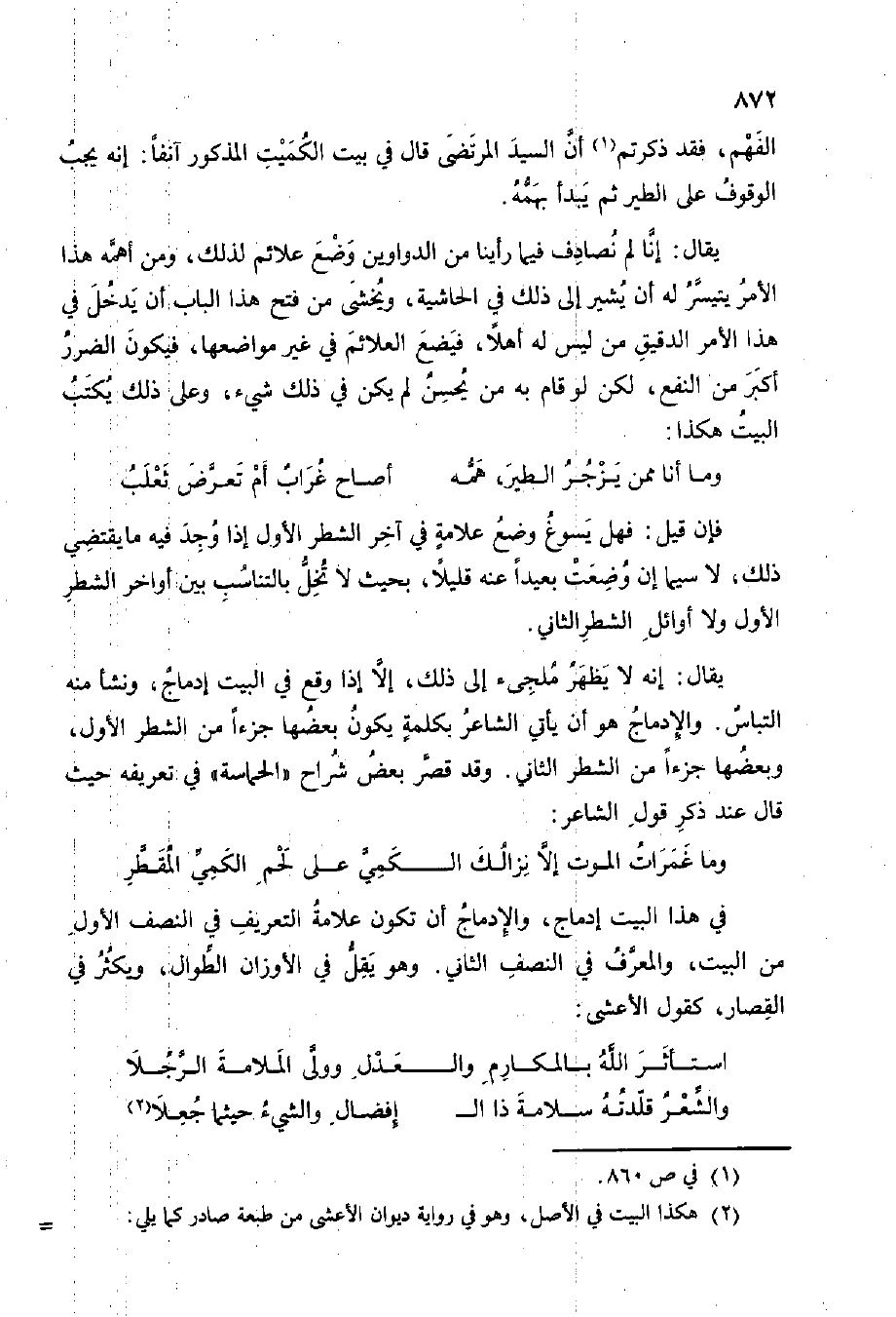 الْفَهم فقد ذكرْتُمْ (1) أَن السَّيِّد المرتضى قَالَ فِي بَيت الْكُمَيْت الْمَذْكُور آنِفا إِنَّه يجب الْوُقُوف على الطير ثمَّ يبْدَأ بهمه
