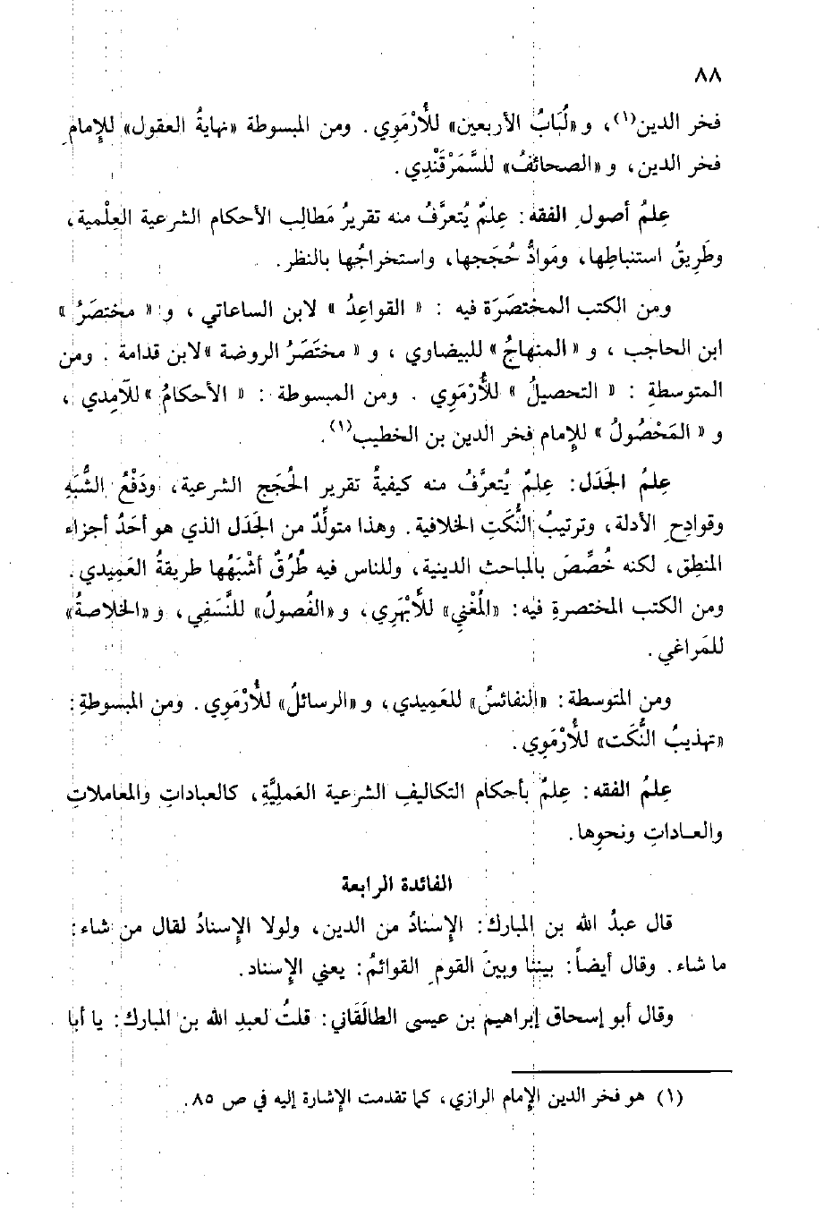 فَخر الدّين ولباب الْأَرْبَعين للأرموي وَمن المبسوطة نِهَايَة الْعُقُول للْإِمَام فَخر الدّين والصحائف للسمرقندي