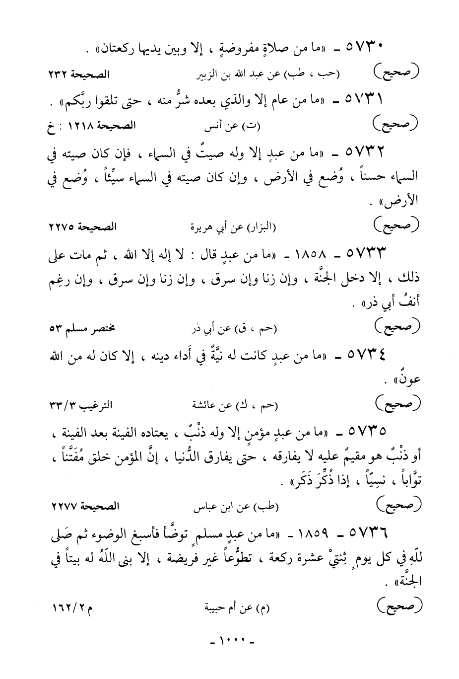 5733 - 1858 - «ما من عبد قال: لا إله إلا الله ثم مات على ذلك إلا دخل الجنة وإن زنا وإن سرق وإن زنا وإن سرق وإن رغم أنف أبي ذر» .