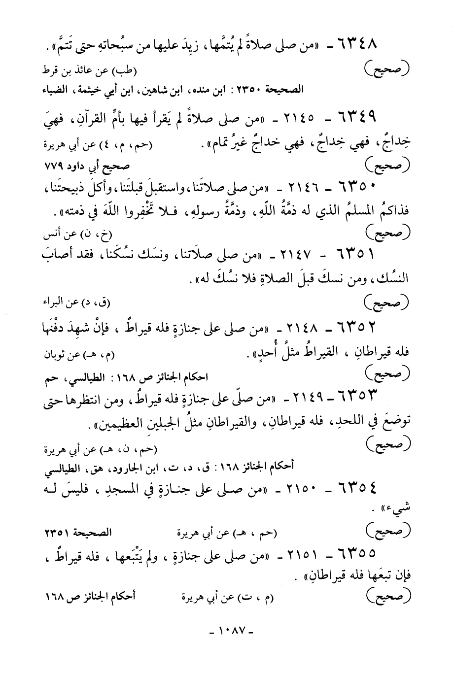 6354 - 2150 - «من صلى على جنازة في المسجد فليس له شيء» .