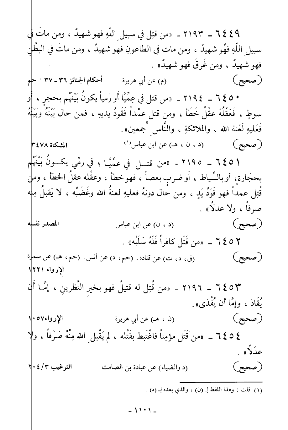 6454 - «من قتل مؤمنا فاغتبط بقتله لم يقبل الله منه صرفا ولا عدلا» .