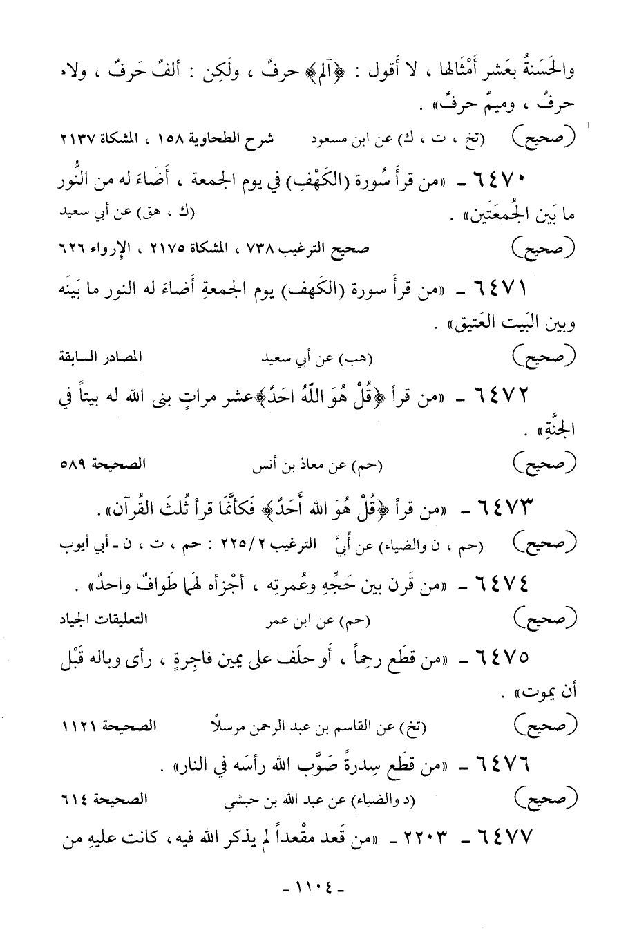 6471 - «من قرأ سورة الكهف يوم الجمعة أضاء له النور ما بينه وبين البيت العتيق» .