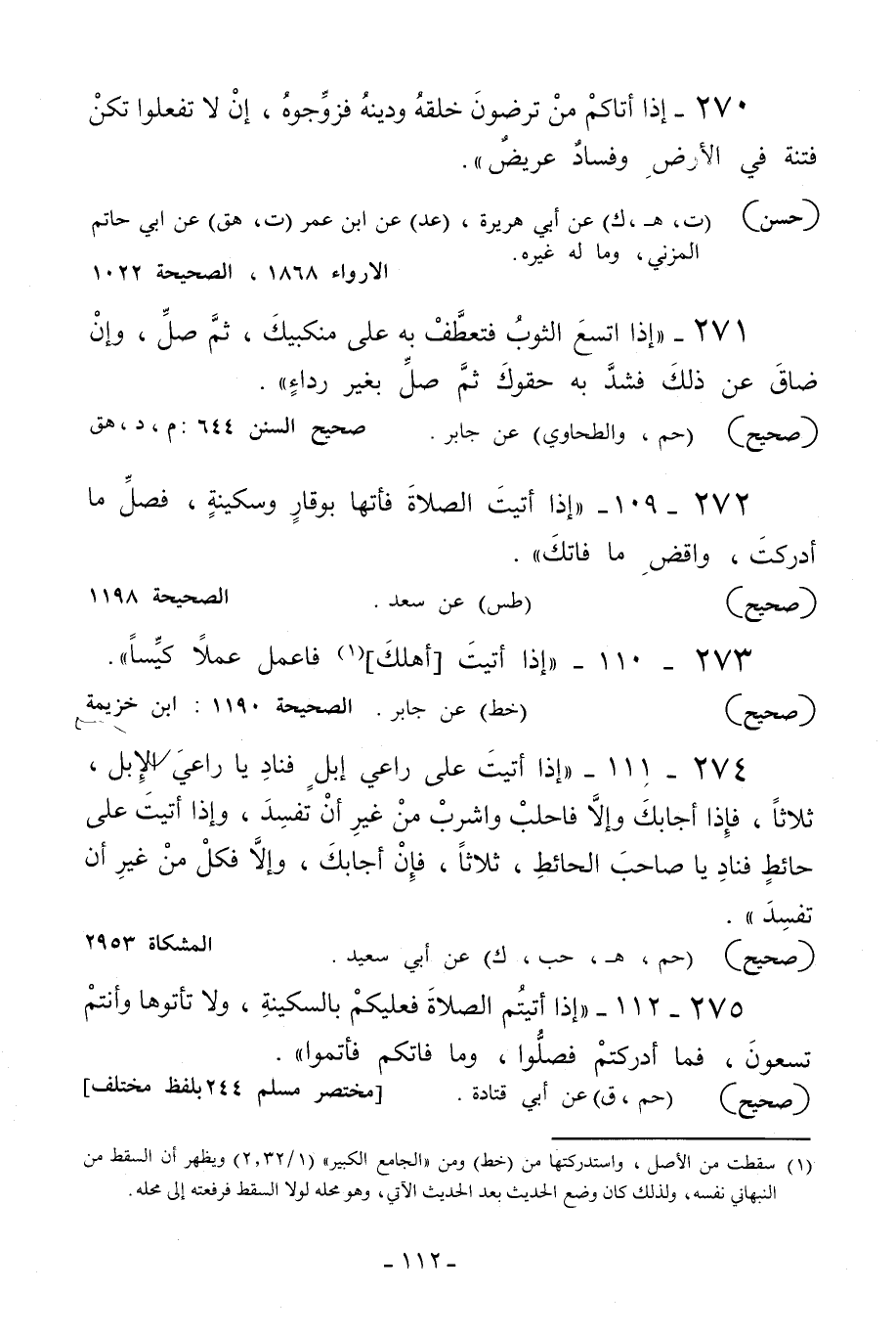 273 - 110 - «إذا أتيت أهلك1 فاعمل عملا كيسا» .