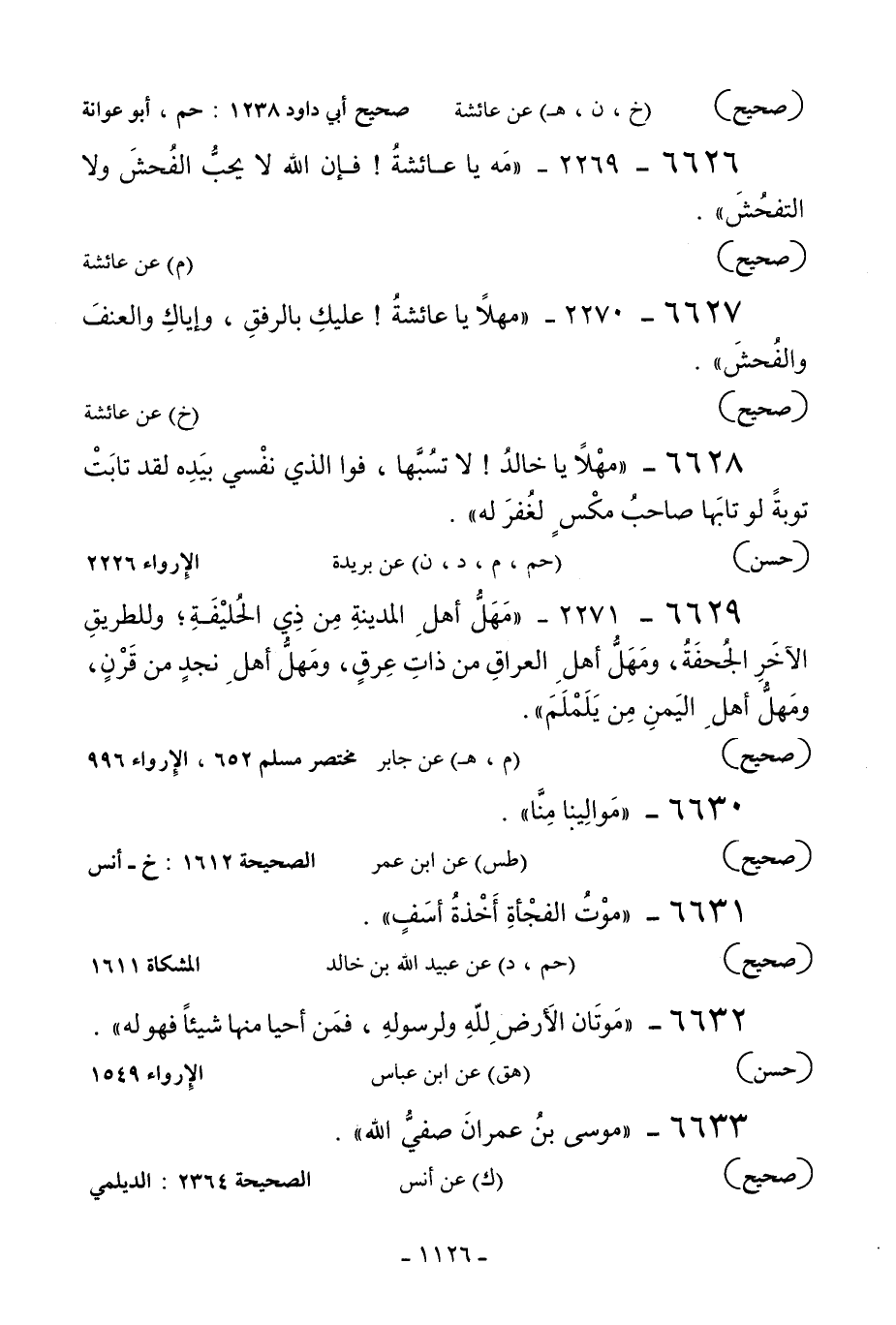 6626 - 2269 - «مه يا عائشة! فإن الله لا يحب الفحش ولا التفحش» .