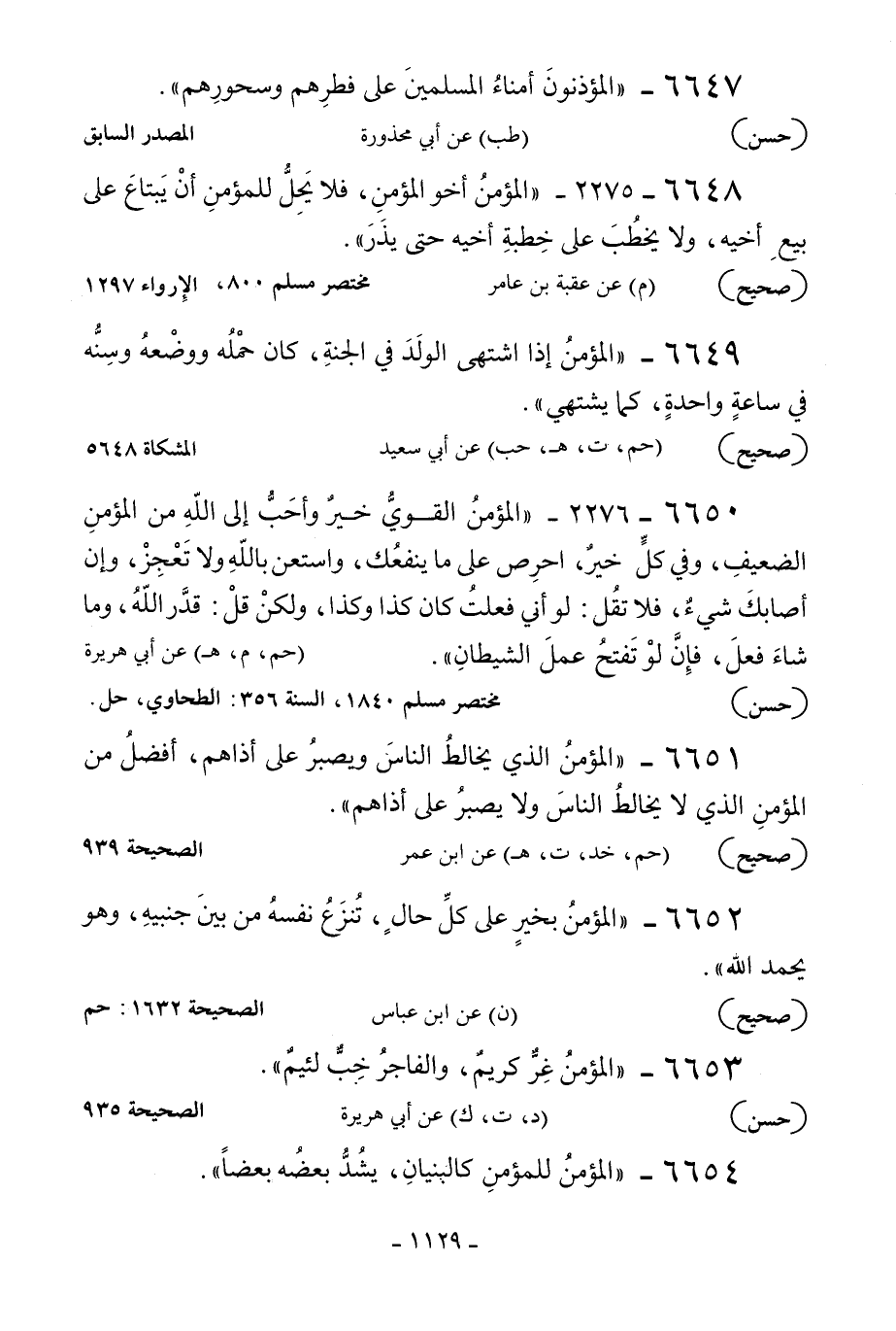 6651 - «المؤمن الذي يخالط الناس ويصبر على أذاهم أفضل من المؤمن الذي لا يخالط الناس ولا يصبر على أذاهم» .