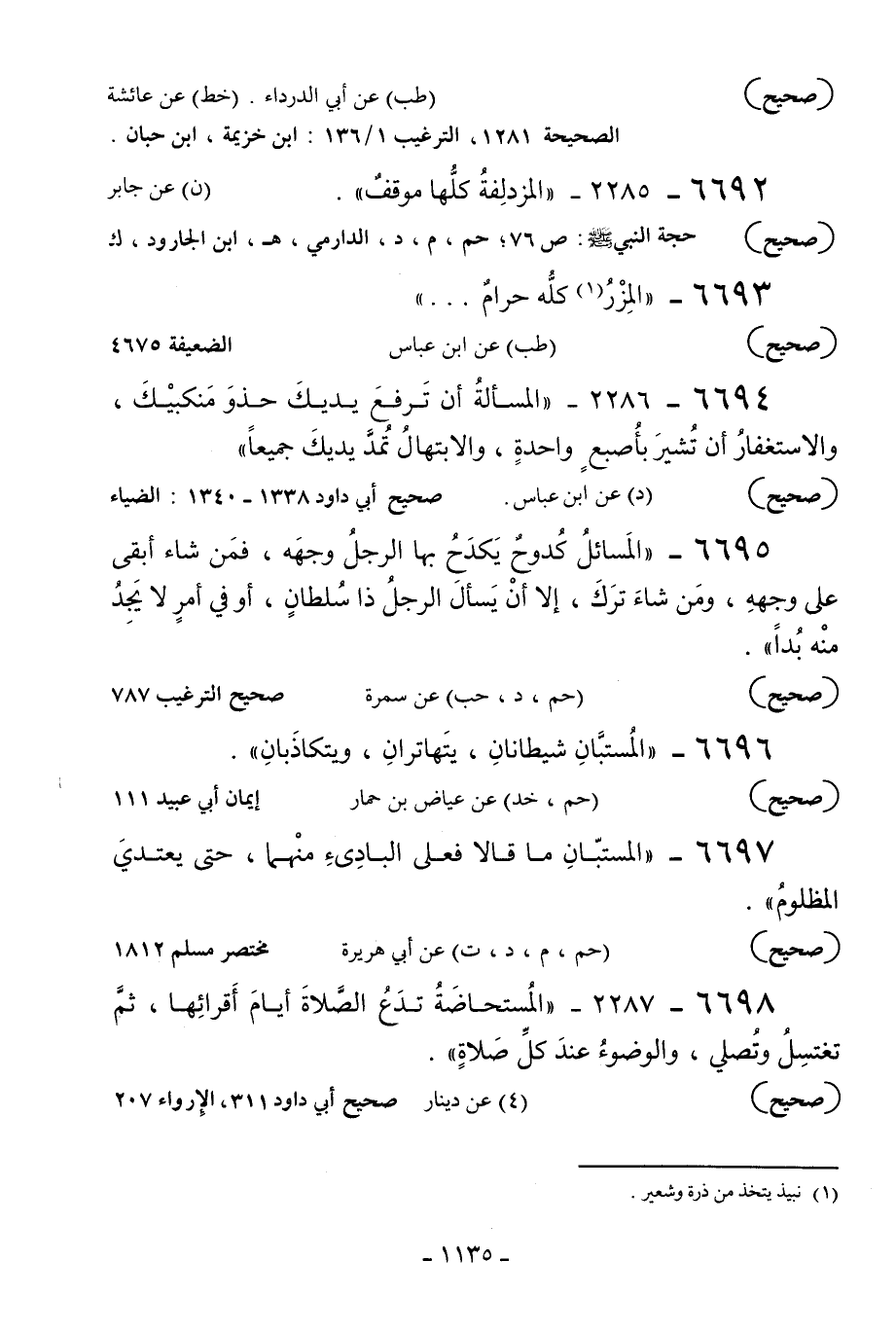 6695 - «المسائل كدوح يكدح بها الرجل وجهه فمن شاء أبقى على وجهه ومن شاء ترك إلا أن يسأل الرجل ذا سلطان أو في أمر لا يجد منه بدا» .