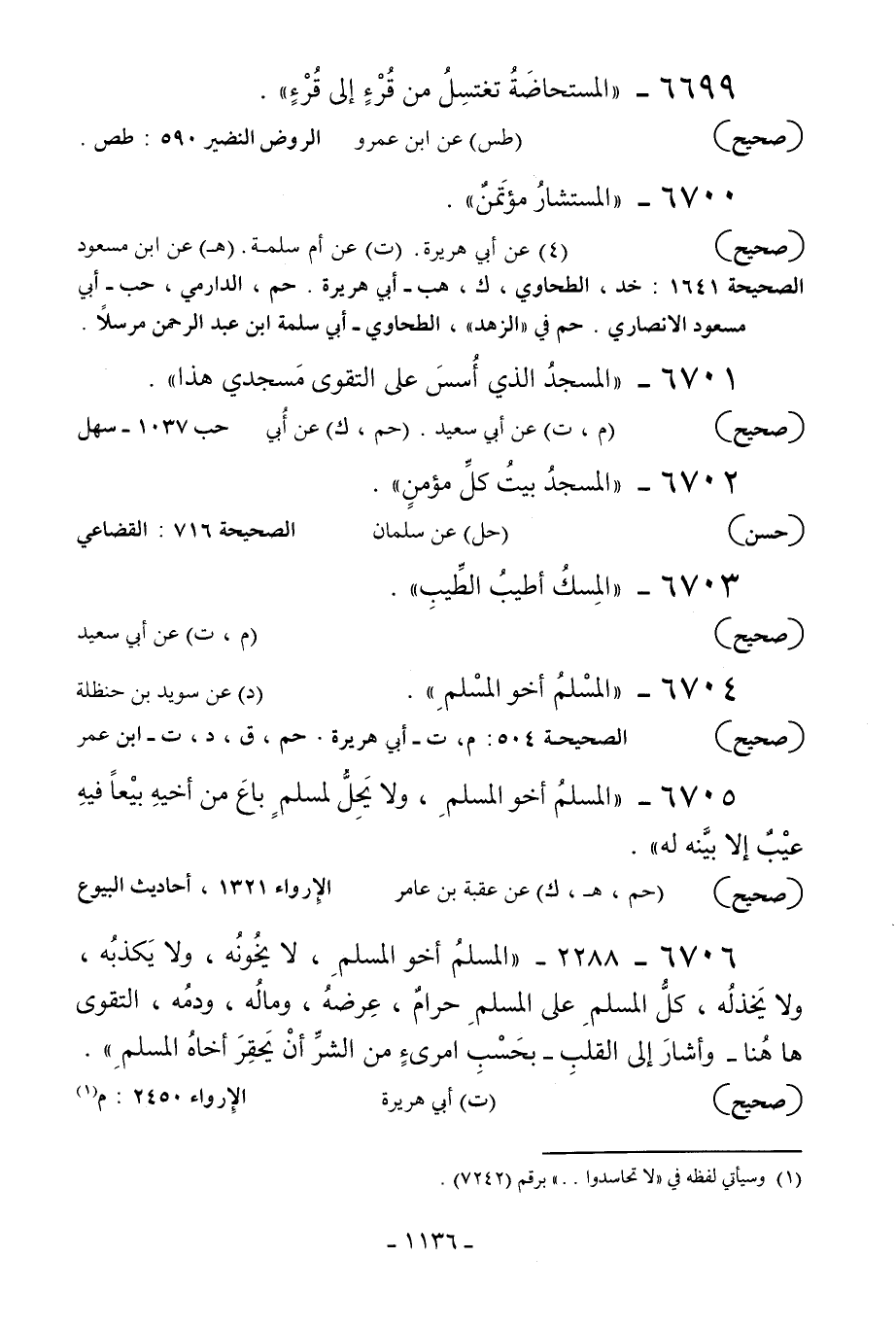 (صحيح) [ت] عن أبي هريرة. الإرواء 2450" م1.