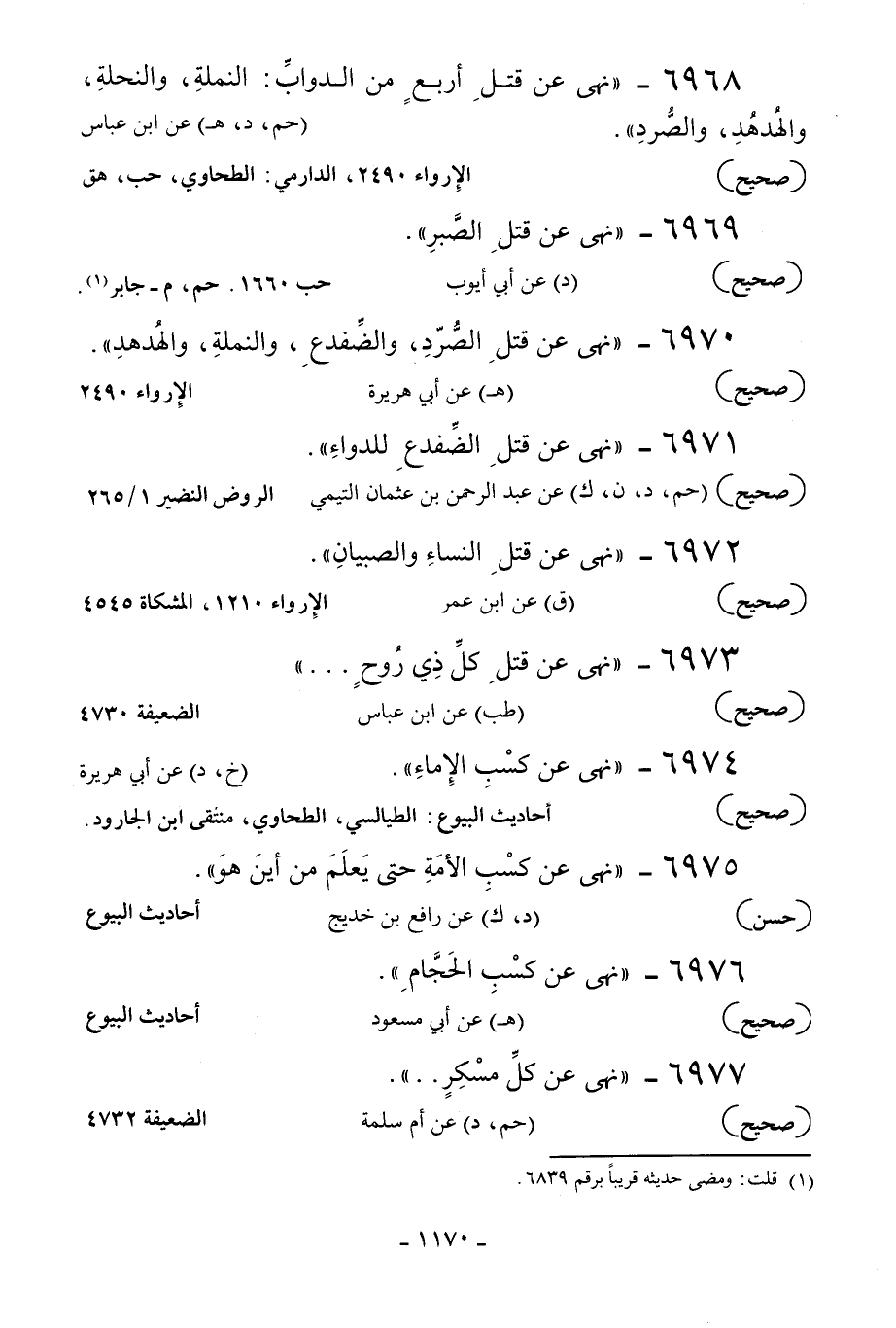 6973 - «نهى عن قتل كل ذي روح.. ... » .