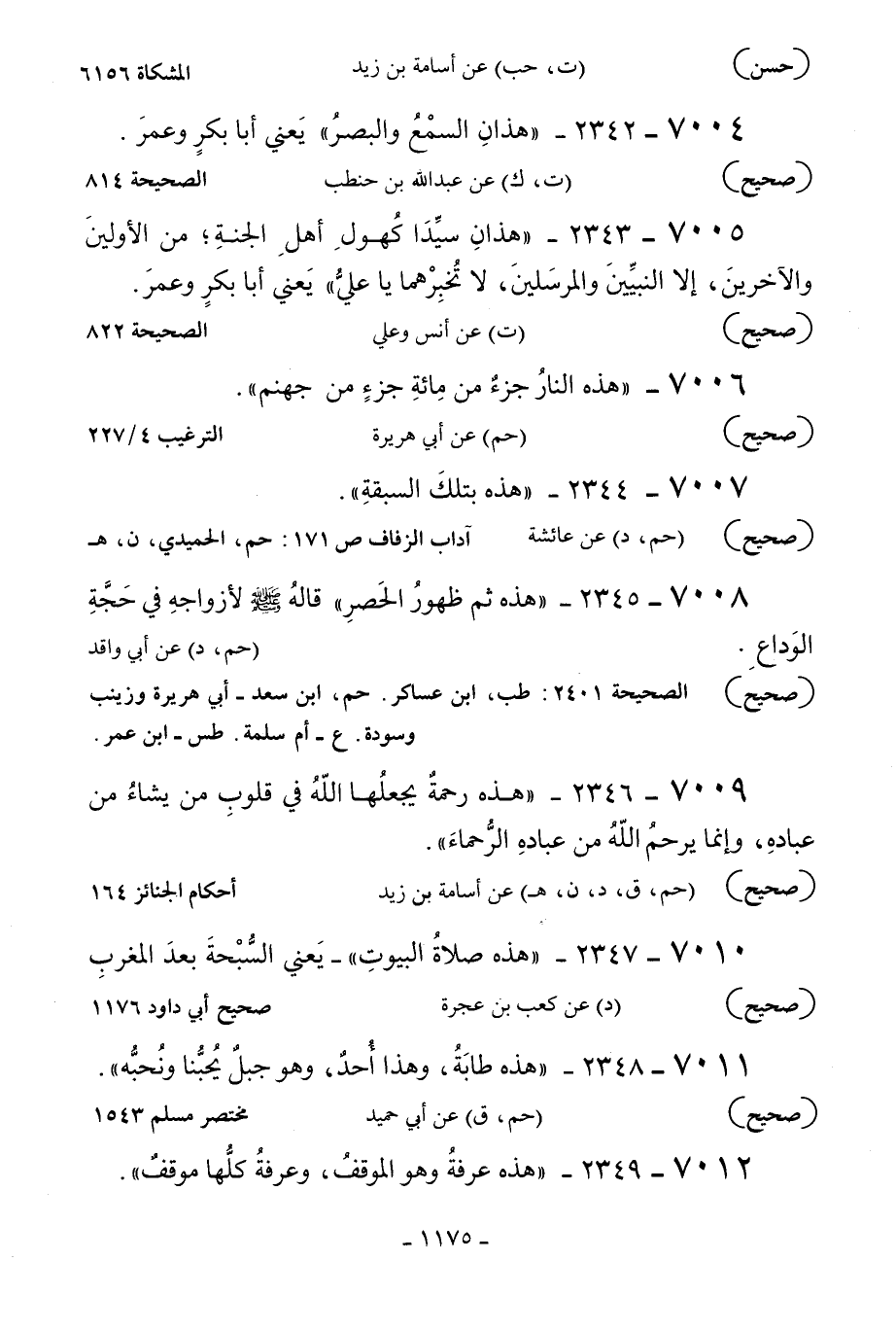7005 - 2343 - «هذان سيدا كهول أهل الجنة من الأولين والآخرين إلا النبيين والمرسلين لا تخبرهما يا علي» - يعني أبا بكر وعمر -.