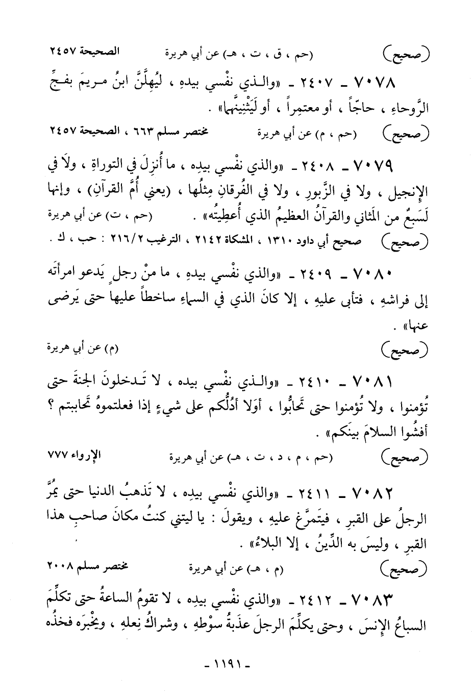 7078 - 2407 - «والذي نفسي بيده ليهلن ابن مريم بفج الروحاء حاجا أو معتمرا أو ليثنينهما» .