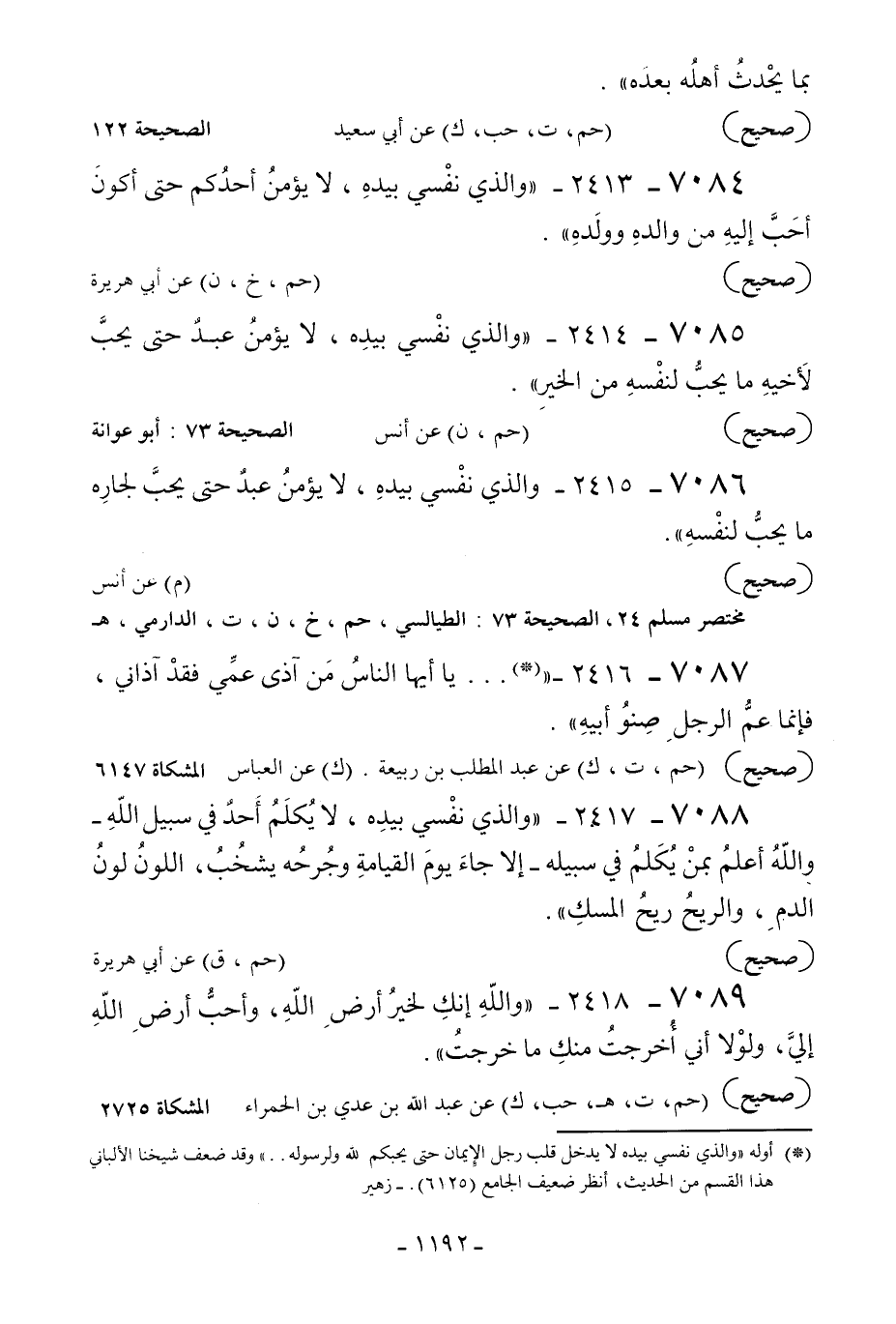 7085 - 2414 - «والذي نفسي بيده لا يؤمن عبد حتى يحب لأخيه ما يحب لنفسه من الخير» .