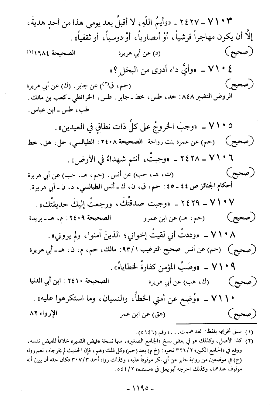 7104 - «وأي داء أدوى من البخل؟» .