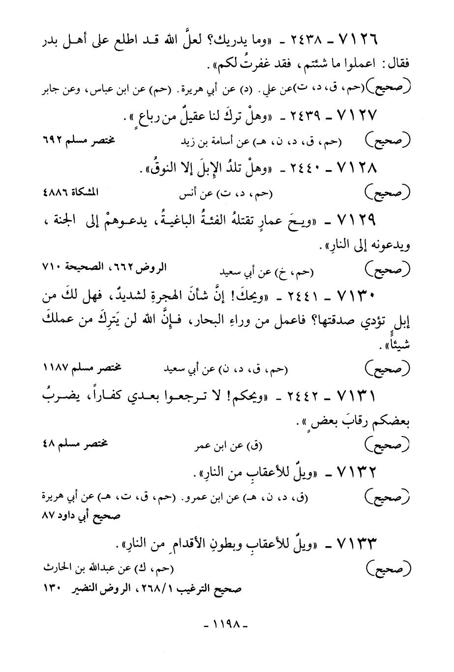 7131 - 2442 - «ويحكم! لا ترجعوا بعدي كفارا يضرب بعضكم رقاب بعض» .