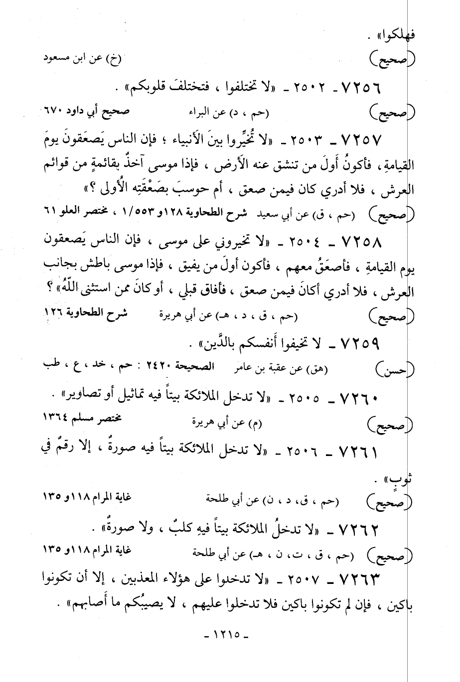 7260 - 2505 - «لا تدخل الملائكة بيتا فيه تماثيل أو تصاوير» .