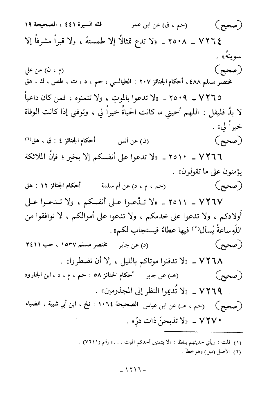 7268 - «لا تدفنوا موتاكم بالليل إلا أن تضطروا» .