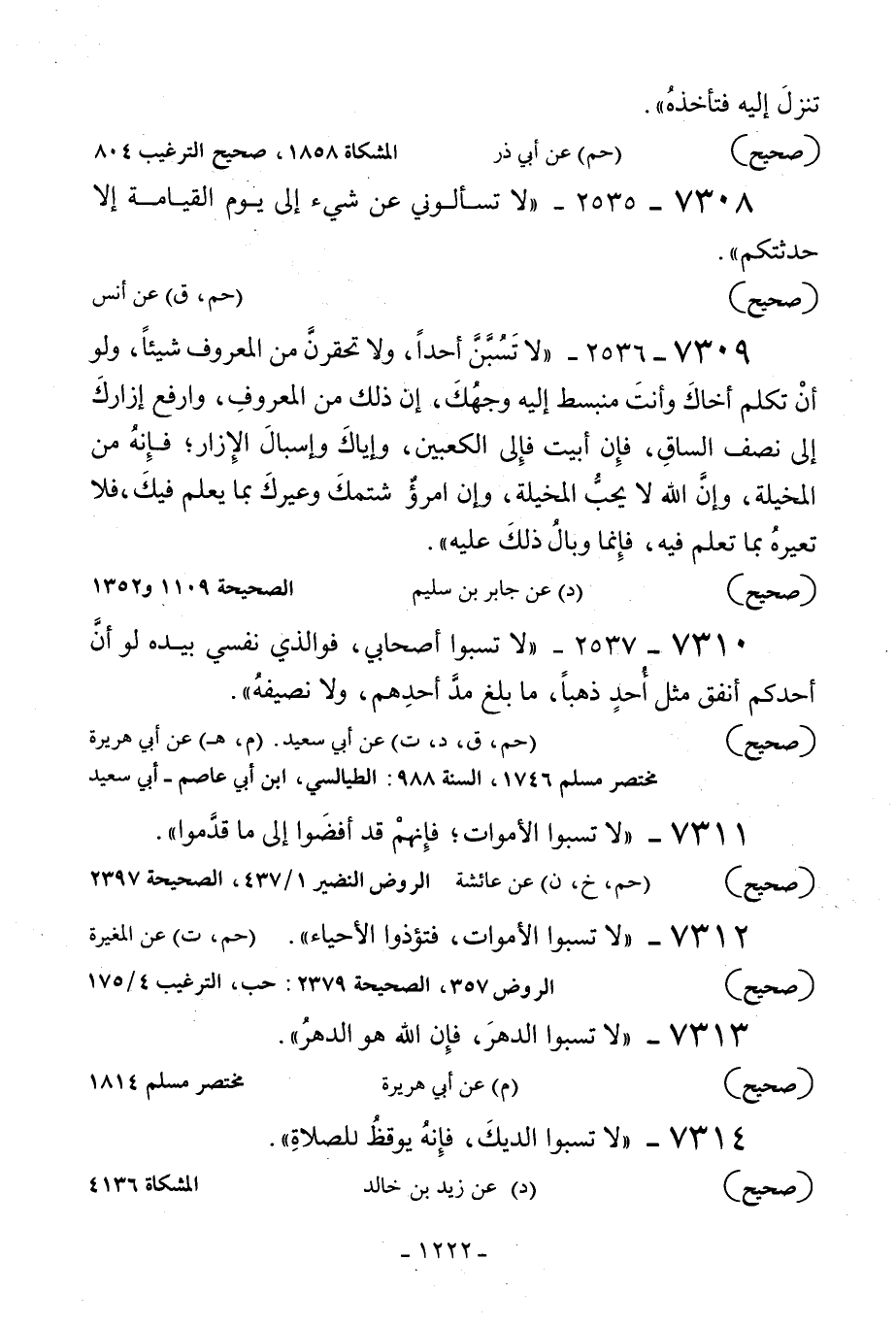 7311 - «لا تسبوا الأموات فإنهم قد أفضوا إلى ما قدموا» .