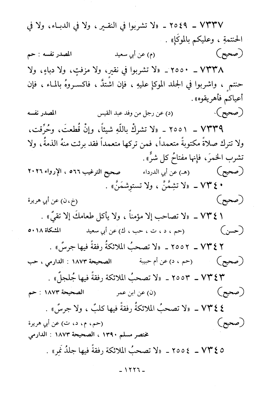 7342 - 2552 - «لا تصحب الملائكة رفقة فيها جرس» .