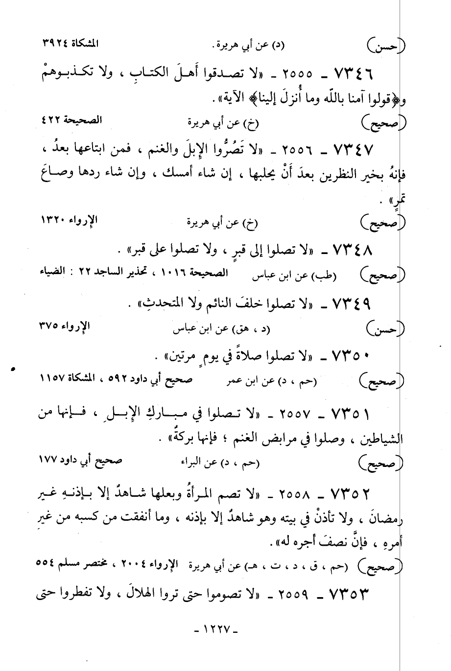 7349 - «لا تصلوا خلف النائم ولا المتحدث» .