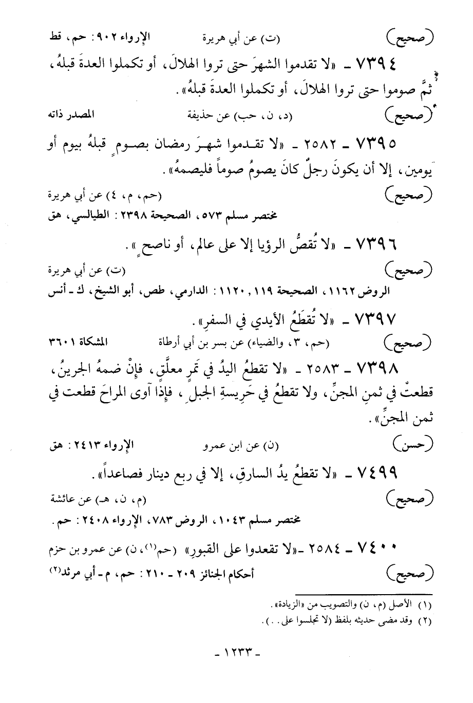 7394 - «لا تقدموا الشهر حتى تروا الهلال أو تكملوا العدة قبله ثم صوموا حتى تروا الهلال أو تكملوا العدة قبله» .
