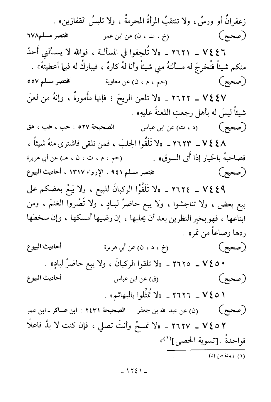 7450 - 2625 - «لا تلقوا الركبان ولا يبع حاضر لباد» .