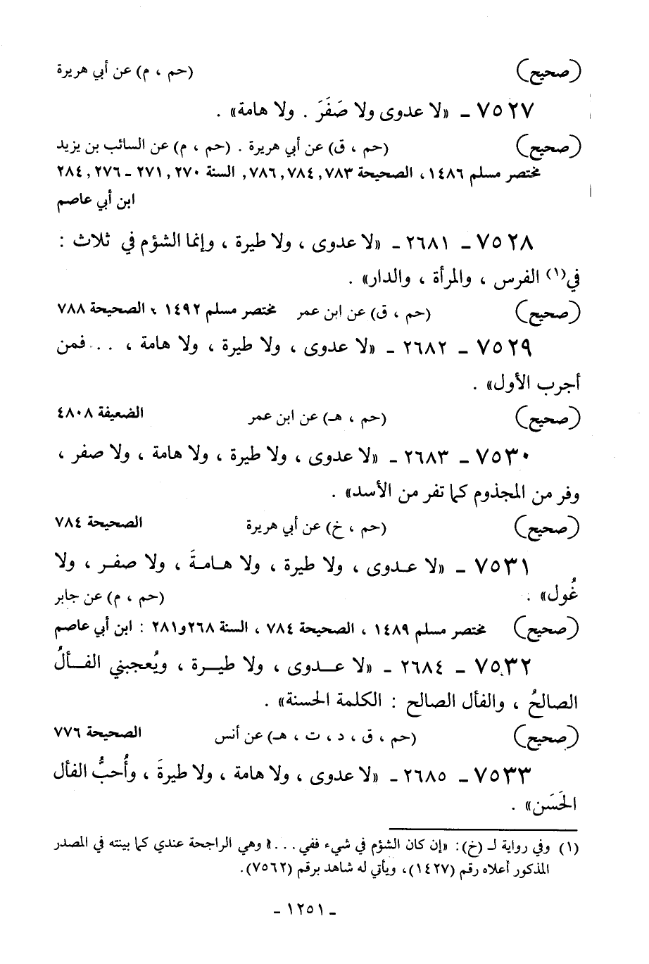 7527 - «لا عدوى ولا صفر ولا هامة» .