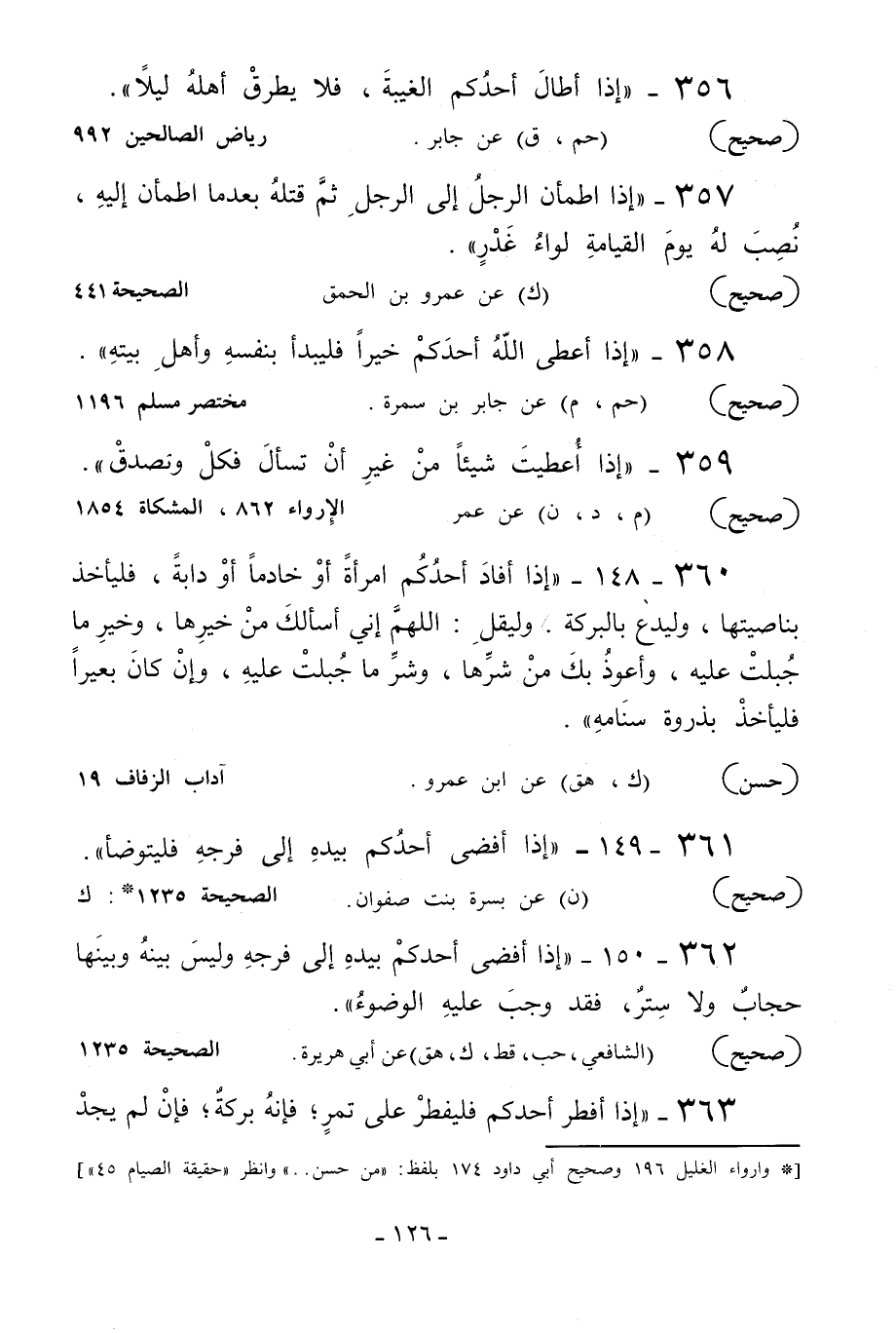 356 - «إذا أطال أحدكم الغيبة فلا يطرق أهله ليلا» .