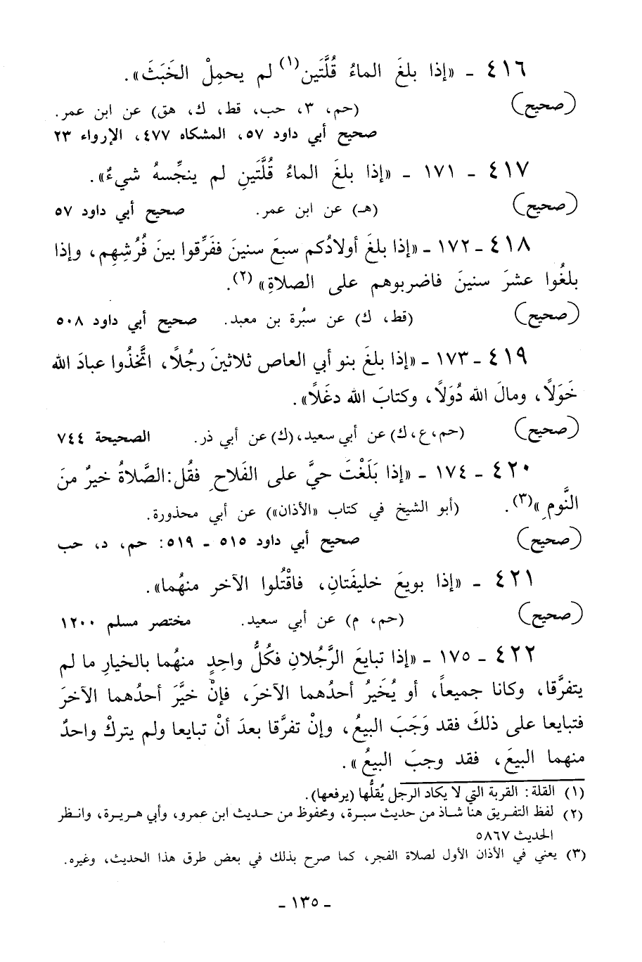 417 - 171 - «إذا بلغ الماء قلتين لم ينجسه شيء» .