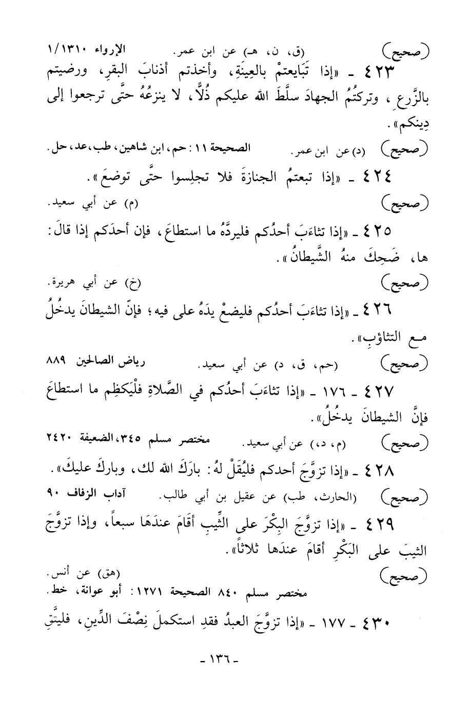428 - «إذا تزوج أحدكم فليقل له: بارك الله لك وبارك عليك» .