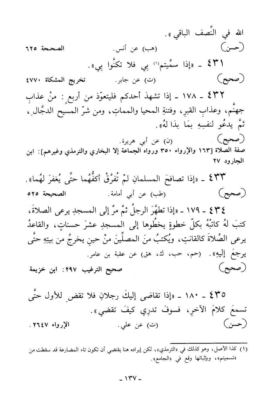 433 - «إذا تصافح المسلمان لم تفرق أكفهما حتى يغفر لهما» .