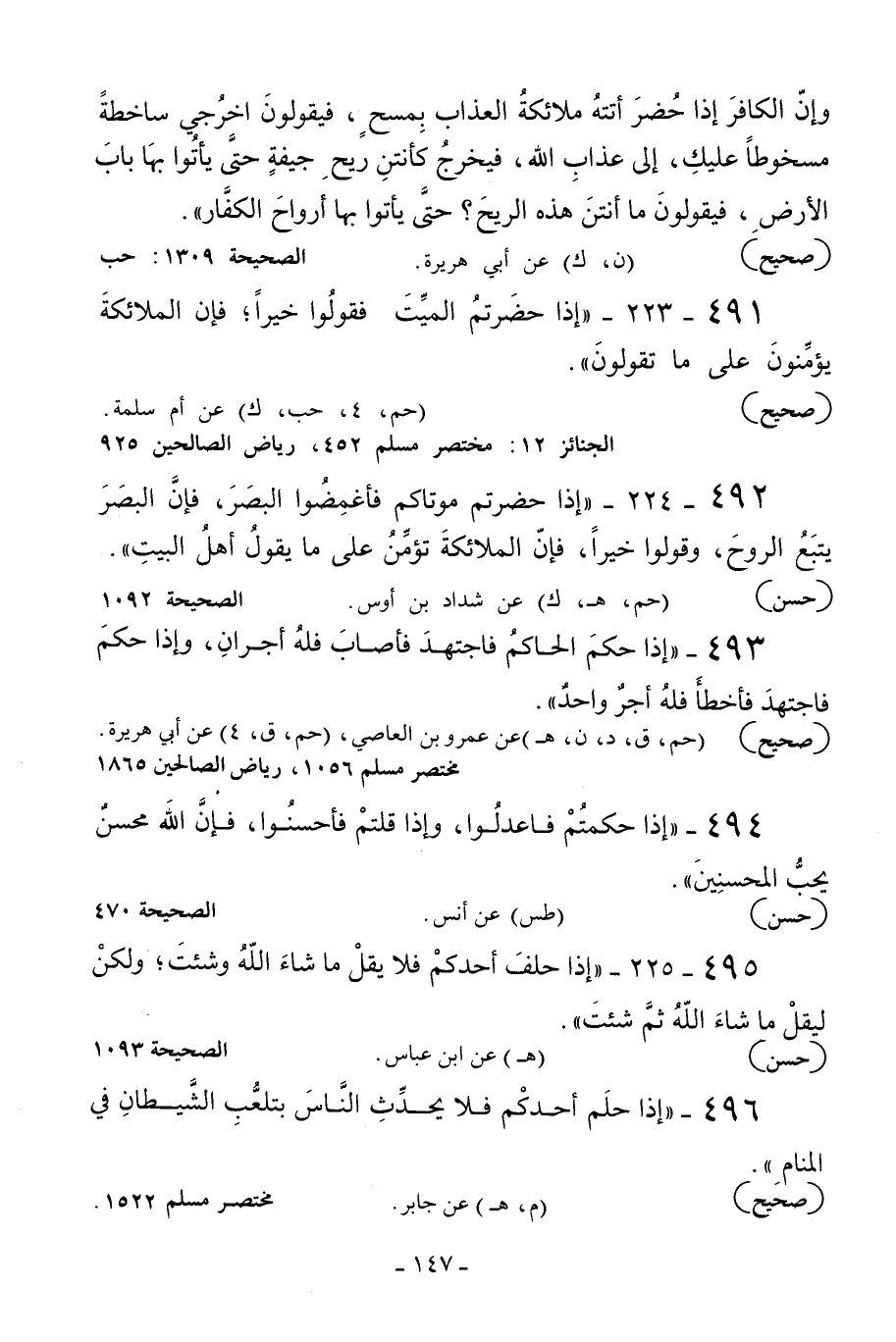 491 - 223 - «إذا حضرتم الميت فقولوا خيرا فإن الملائكة يؤمنون على ما تقولون» .