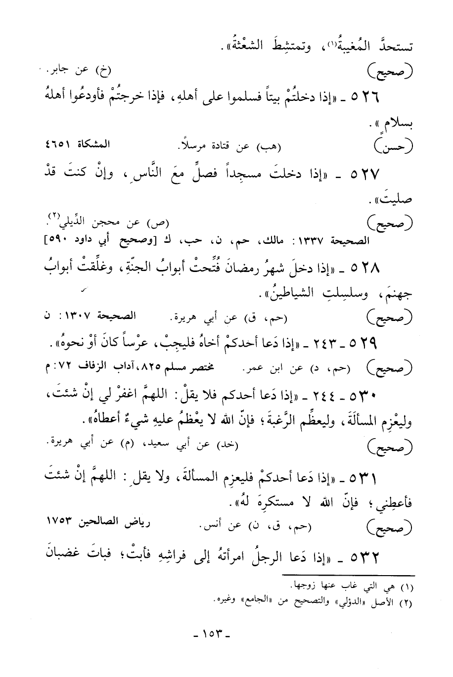 526 - «إذا دخلتم بيتا فسلموا على أهله فإذا خرجتم فأودعوا أهله بسلام» .