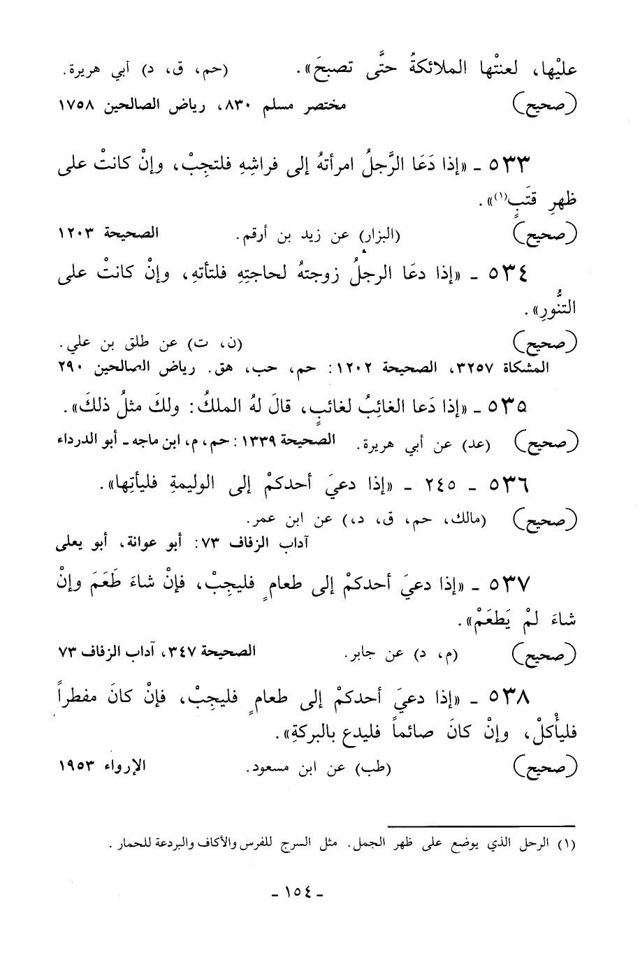 533 - «إذا دعا الرجل امرأته إلى فراشه فلتجب وإن كانت على ظهر قتب» 1.