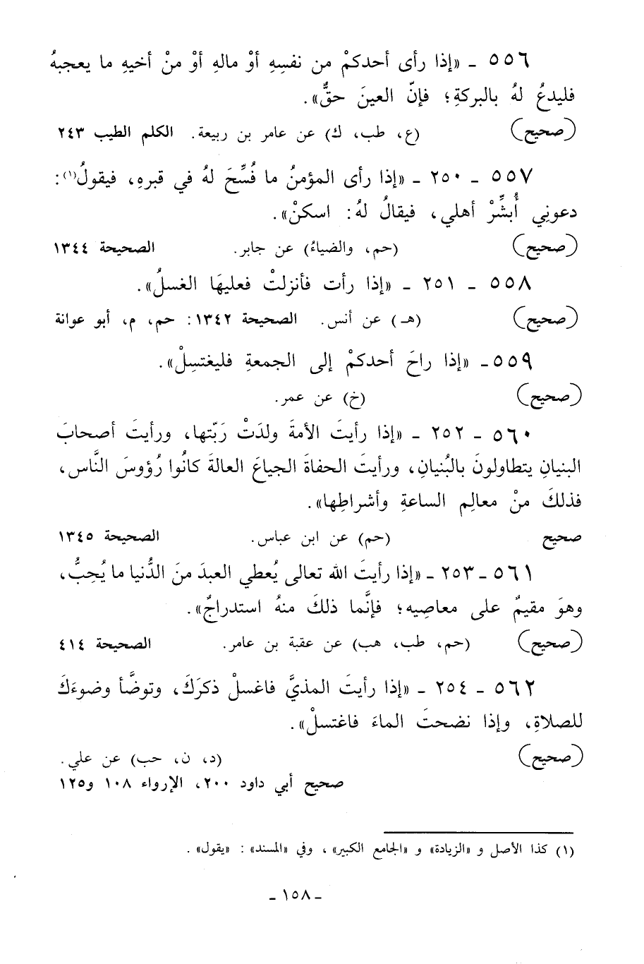 562 - 254 - «إذا رأيت المذي فاغسل ذكرك وتوضأ وضوءك للصلاة وإذا نضحت الماء فاغتسل» .