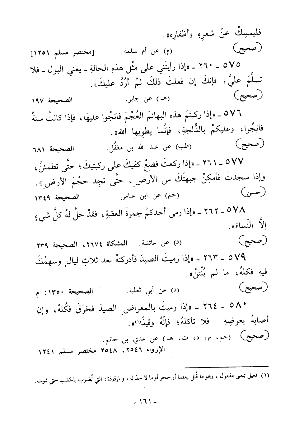 579 - 263 - «إذا رميت الصيد فأدركته بعد ثلاث ليال وسهمك فيه فكله ما لم ينتن» .