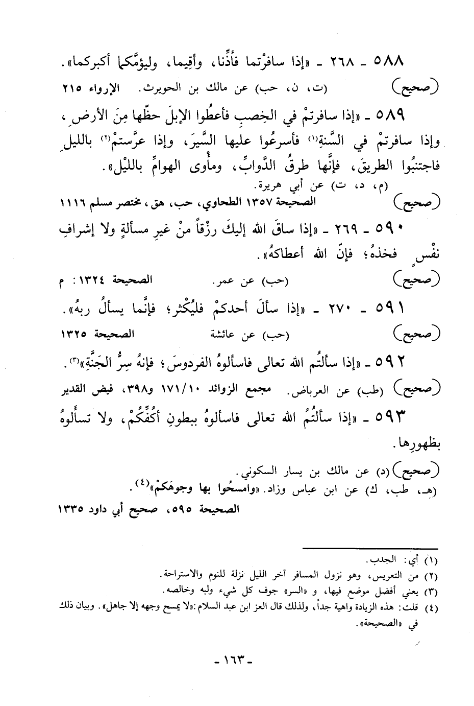 589 - «إذا سافرتم في الخصب فأعطوا الإبل حظها من الأرض وإذا سافرتم في السنة1 فأسرعوا عليها السير وإذا عرستم2 بالليل فاجتنبوا الطريق فإنها طرق الدواب ومأوى الهوام بالليل» .