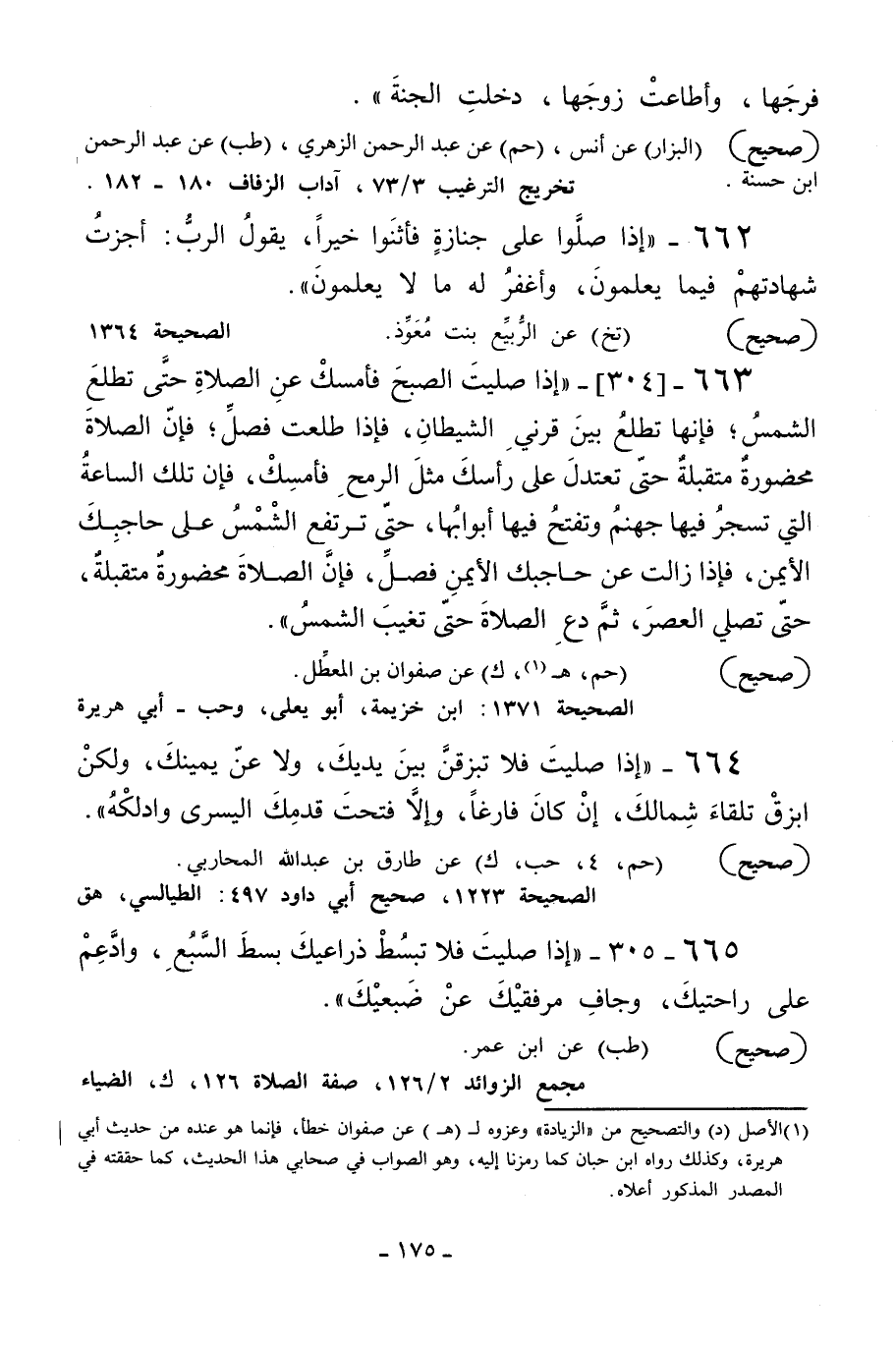 665 - 305 - «إذا صليت فلا تبسط ذراعيك بسط السبع وادعم على راحتيك وجاف مرفقيك عن ضبعيك» .