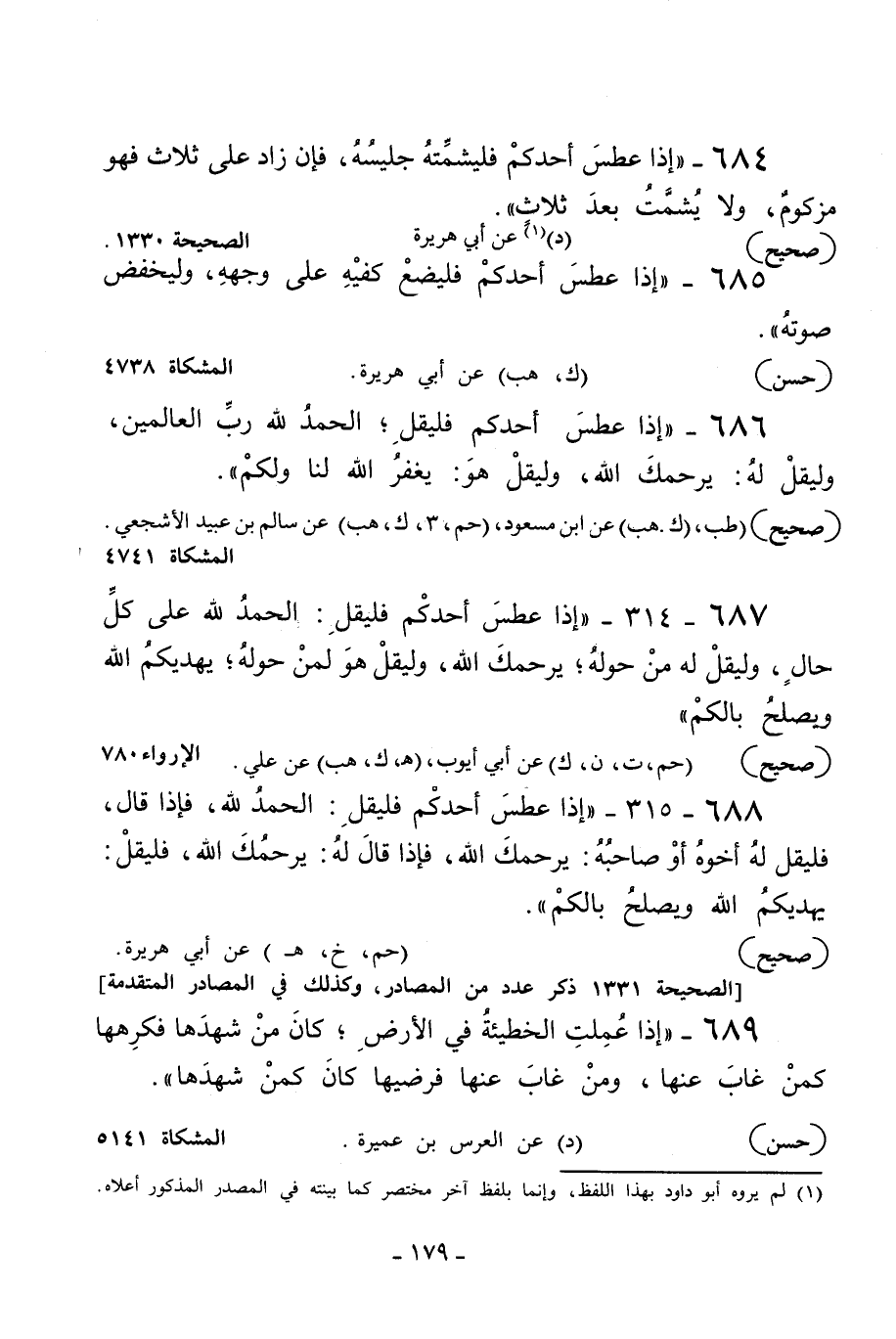 684 - «إذا عطس أحدكم فليشمته جليسه فإن زاد على ثلاث فهو مزكوم ولا يشمت بعد ثلاث» .
