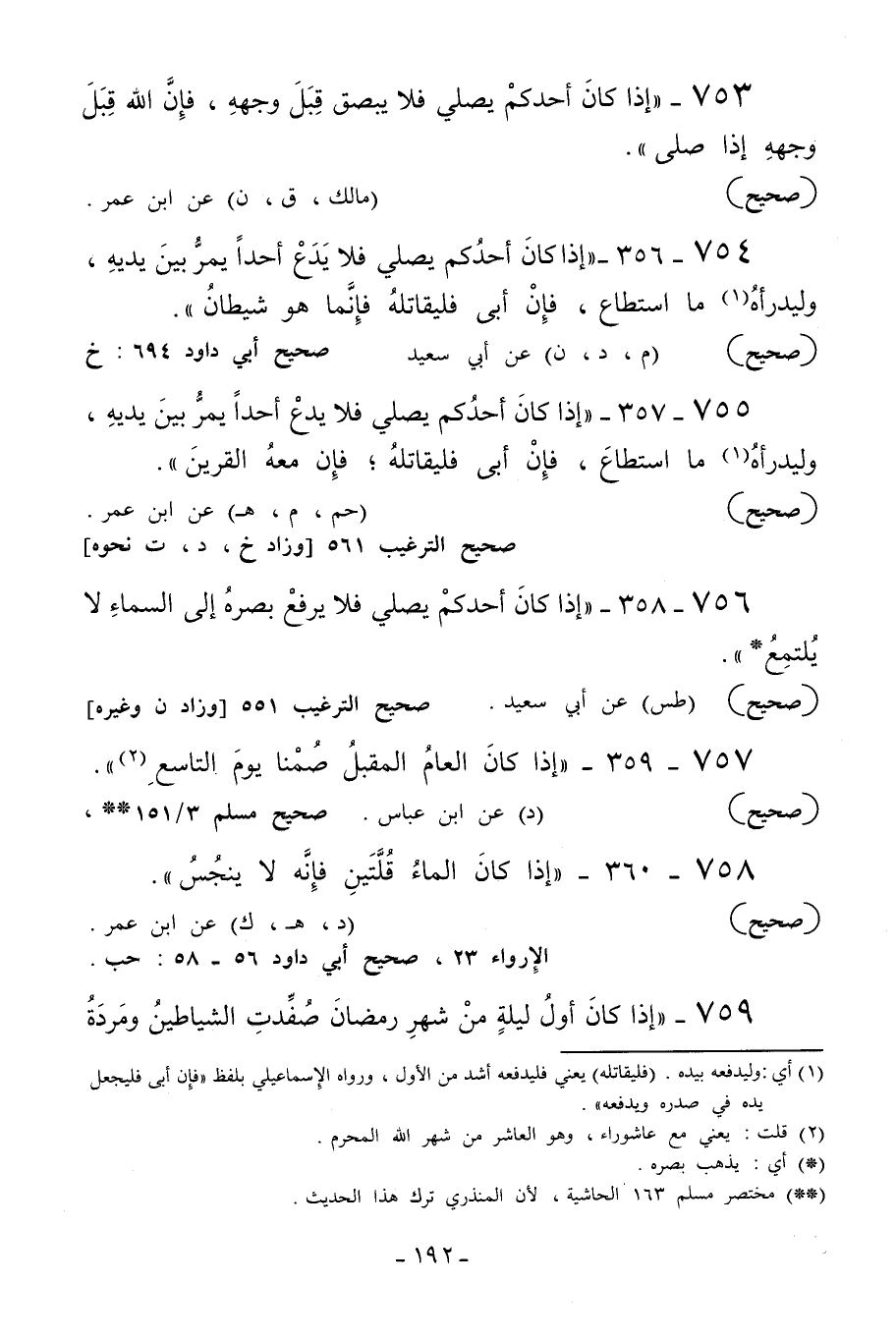 754 - 356 - «إذا كان أحدكم يصلي فلا يدع أحدا يمر بين يديه وليدرأه ما استطاع فإن أبى فليقاتله فإنما هو شيطان» .