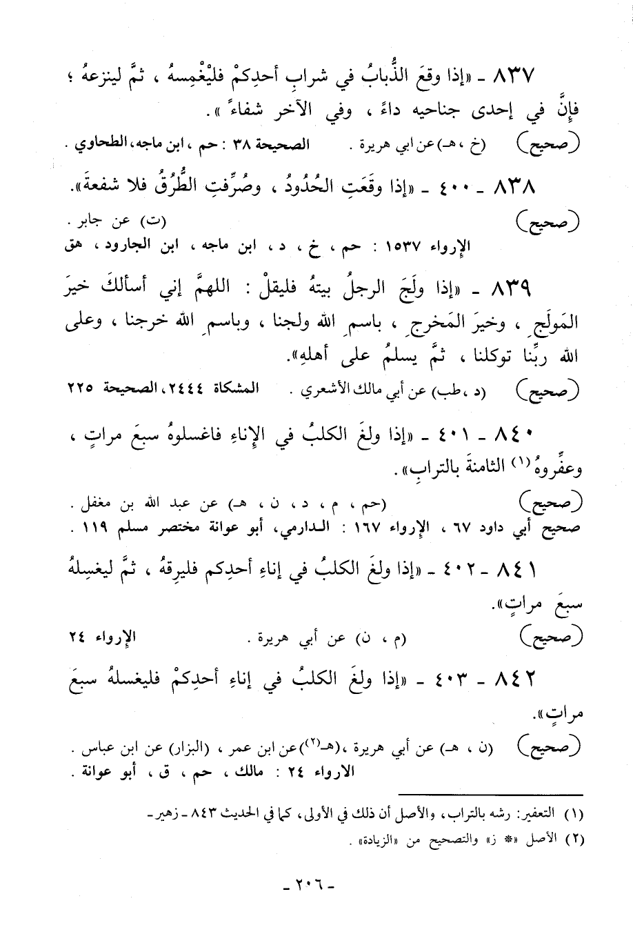 840 - 401 - «إذا ولغ الكلب في الإناء فاغسلوه سبع مرات وعفروه1 الثامنة بالتراب» .