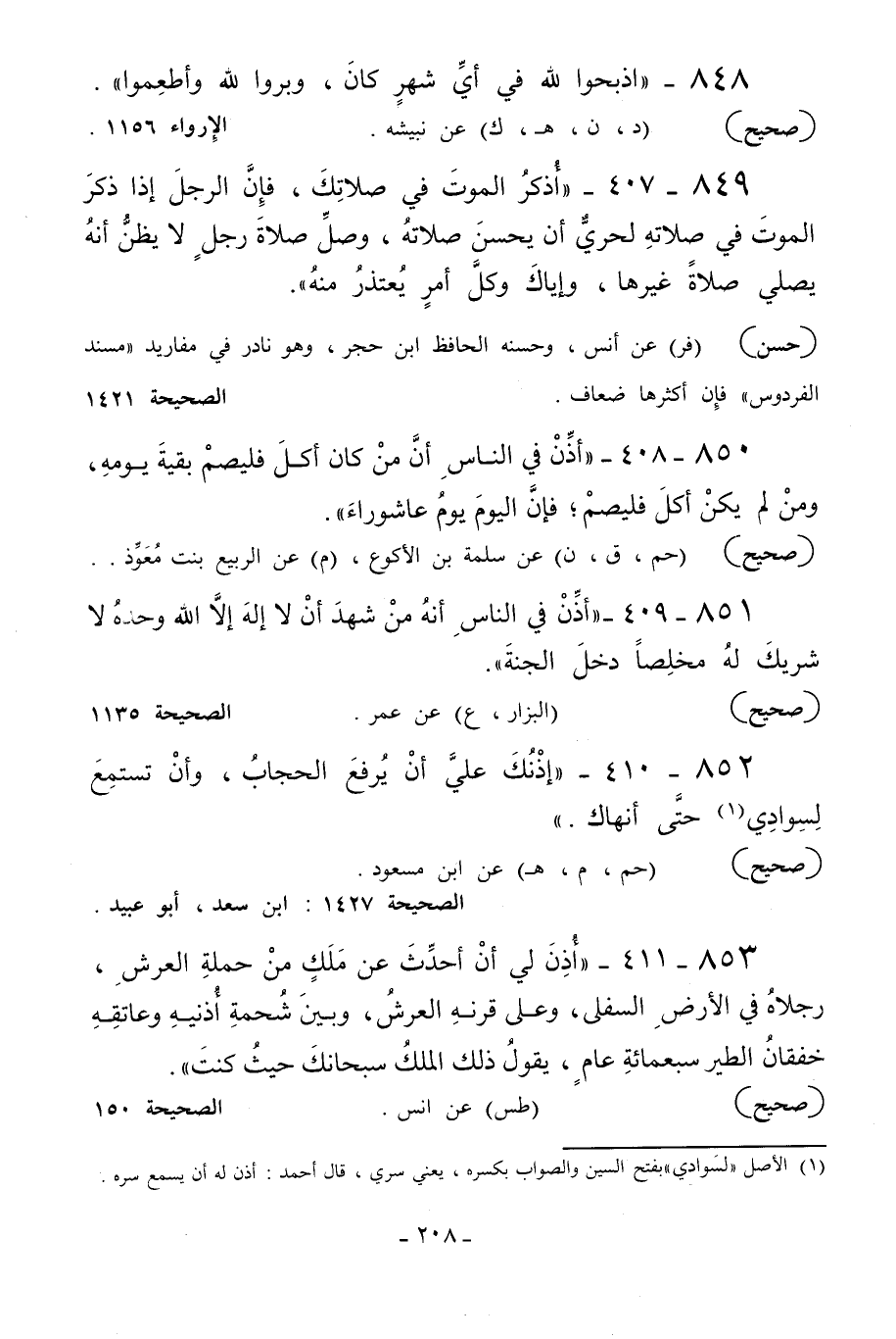 851 - 409 - «أذن في الناس أنه من شهد أن لا إله إلا الله وحده لا شريك له مخلصا دخل الجنة» .