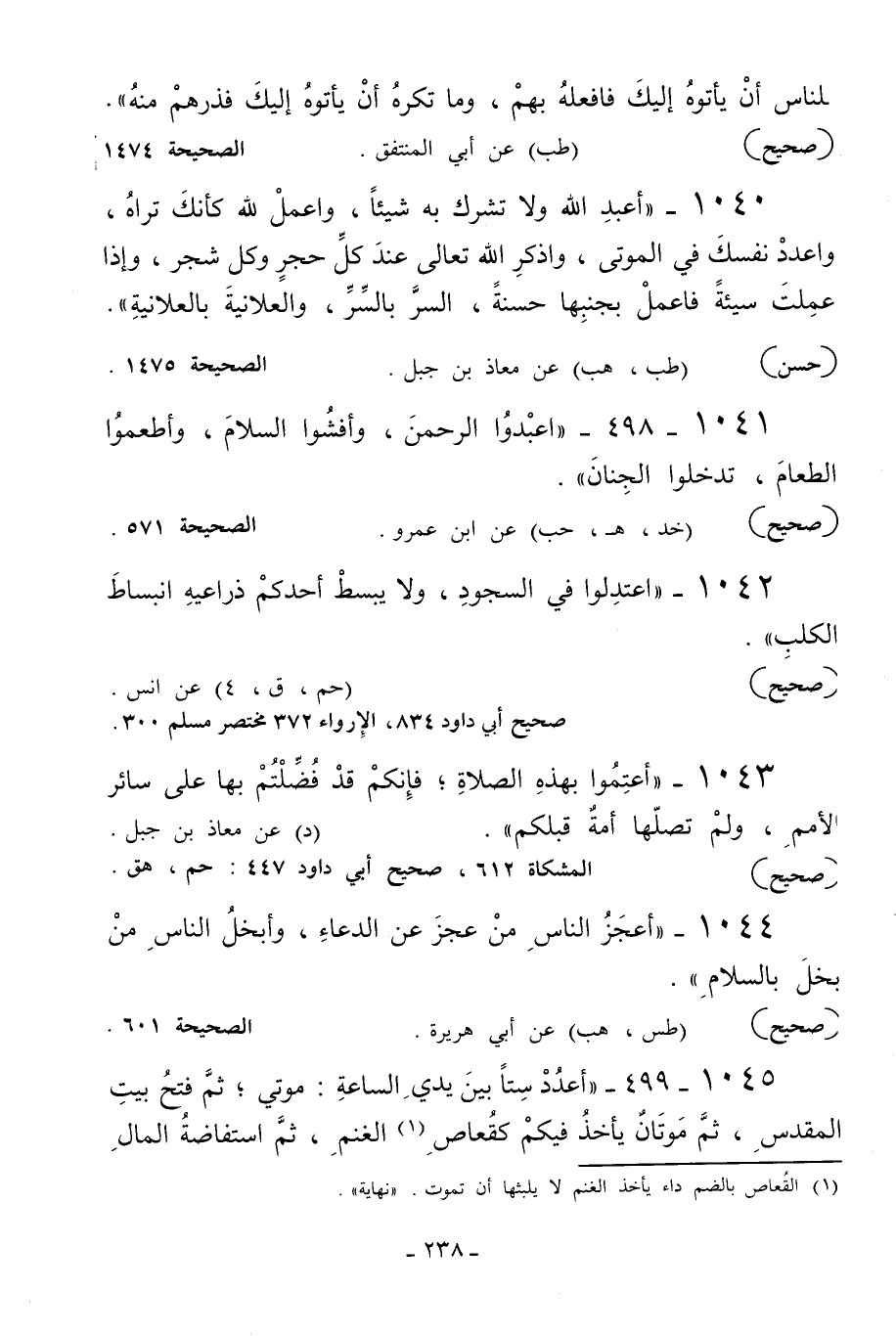 1045 - 499 - "اعدد ستا بين يدي الساعة: موتي ثم فتح بيت المقدس ثم موتان يأخذ فيكم كقعاص1 الغنم، ثم استفاضة المال