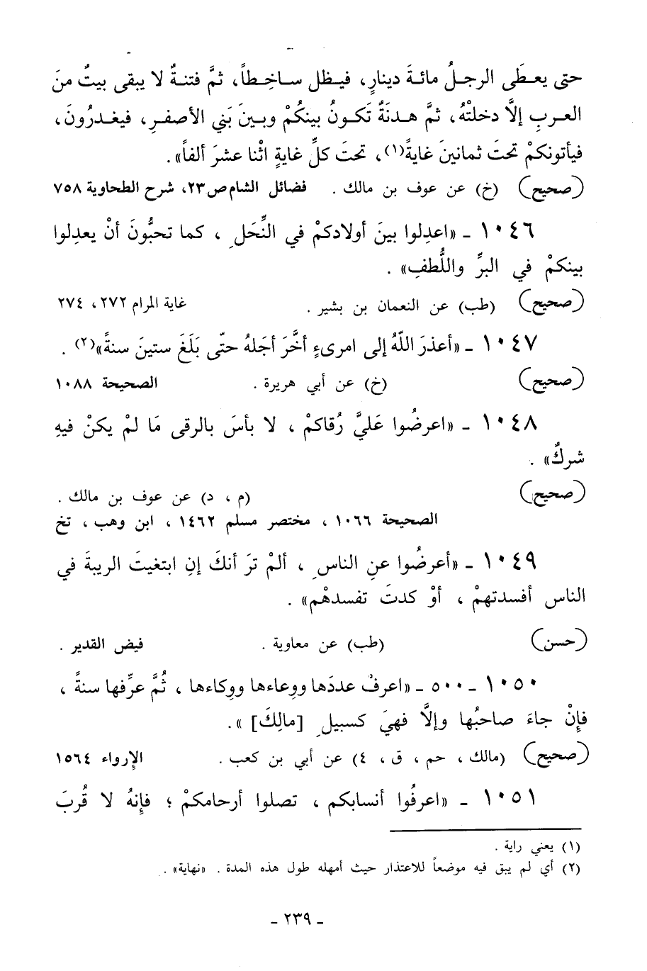 1046 - «اعدلوا بين أولادكم في النحل كما تحبون أن يعدلوا بينكم في البر واللطف» .