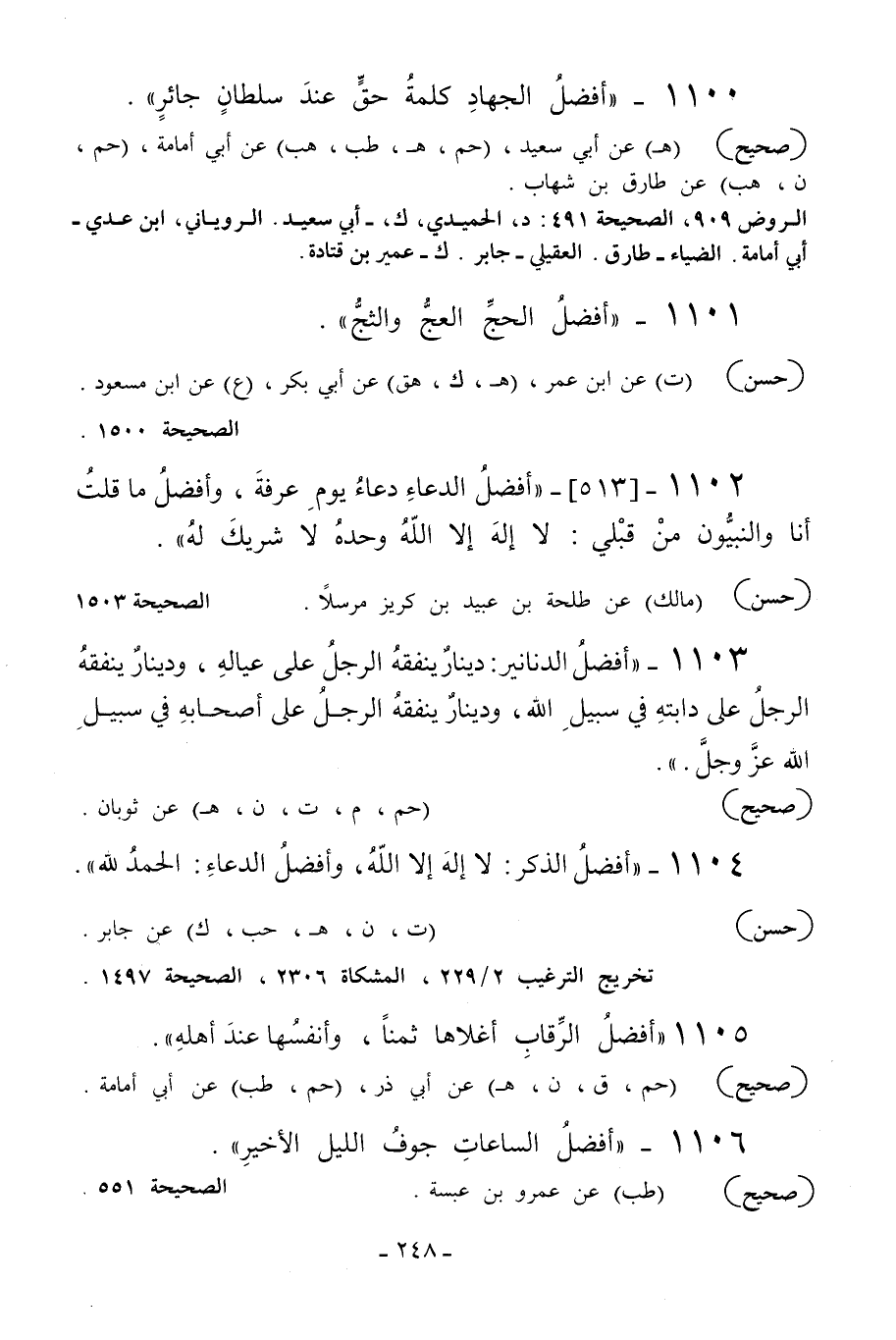 1104 - «أفضل الذكر: لا إله إلا الله وأفضل الدعاء: الحمد لله» .