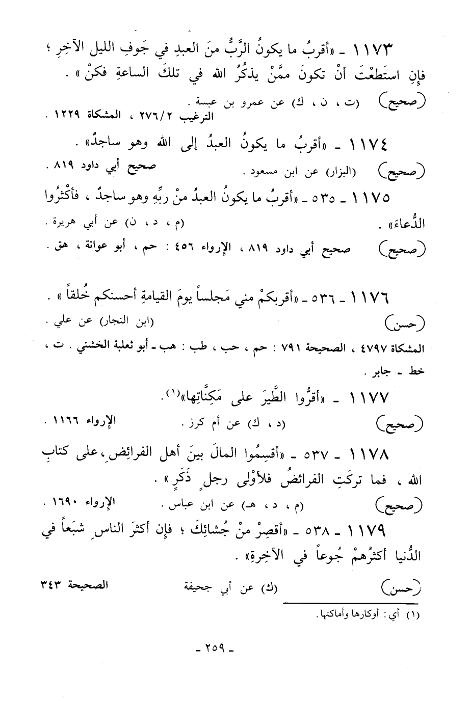 1173 - «أقرب ما يكون الرب من العبد في جوف الليل الآخر فإن استطعت أن تكون ممن يذكر الله في تلك الساعة فكن» .
