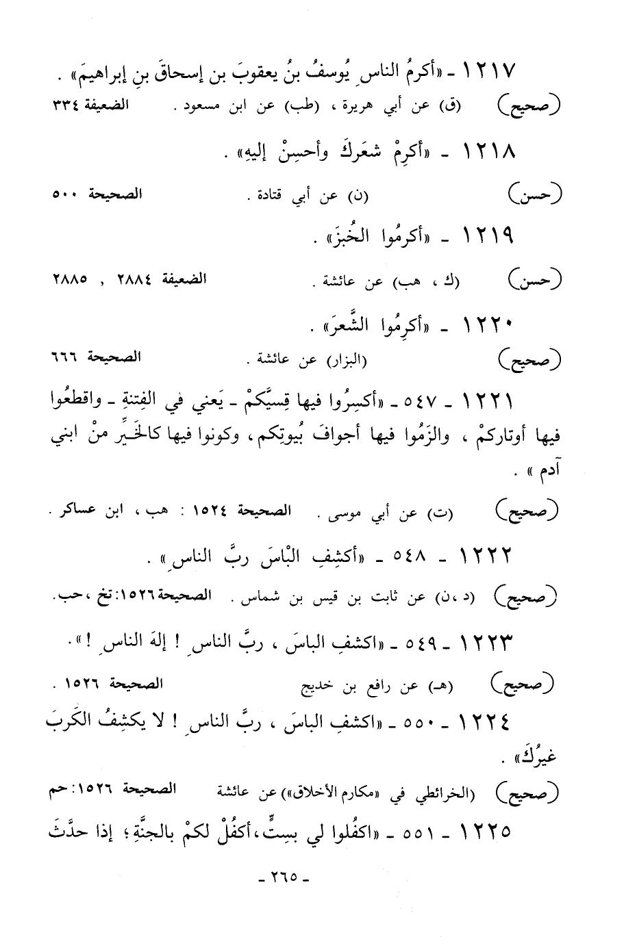 1221 - 547 - «اكسروا فيها قسيكم - يعني في الفتنة - واقطعوا فيها أوتاركم والزموا فيها أجواف بيوتكم وكونوا فيها كالخير من ابني آدم» .